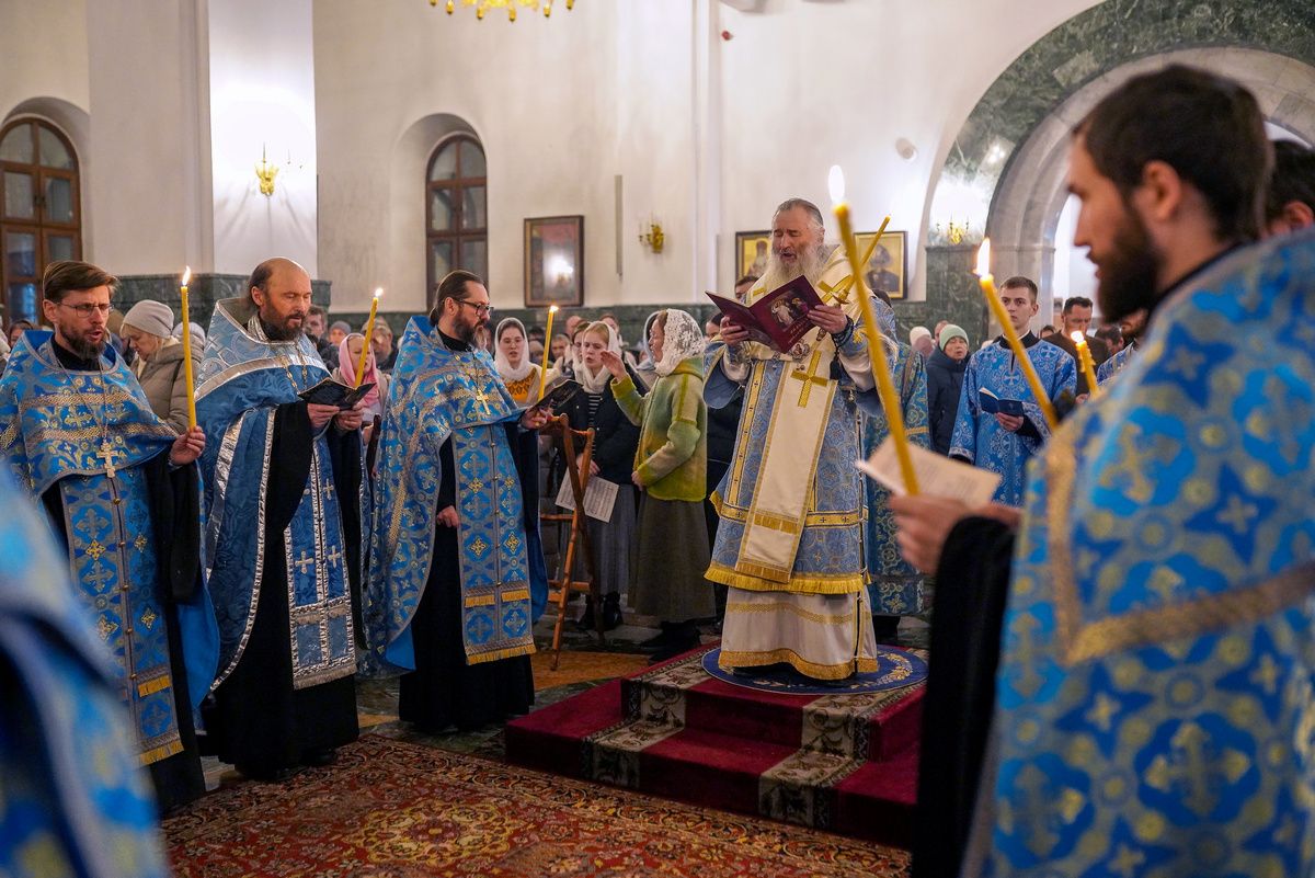 22 ноября вечером, в канун Недели 24-й по Пятидесятнице, дня памяти преподобного Матфея Яранского, митрополит Йошкар-Олинский и Марийский Иоанн возглавил всенощное бдение в Благовещенском кафедральном соборе.