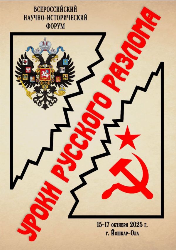 Государственный архив Республики Марий Эл приглашает на Всероссийский научно-исторический форум "Уроки русского разлома", посвящённый 105-летию окончания Гражданской войны в Европейской части России, который пройдёт в Йошкар-Оле 15 — 17 октября 2025 года.