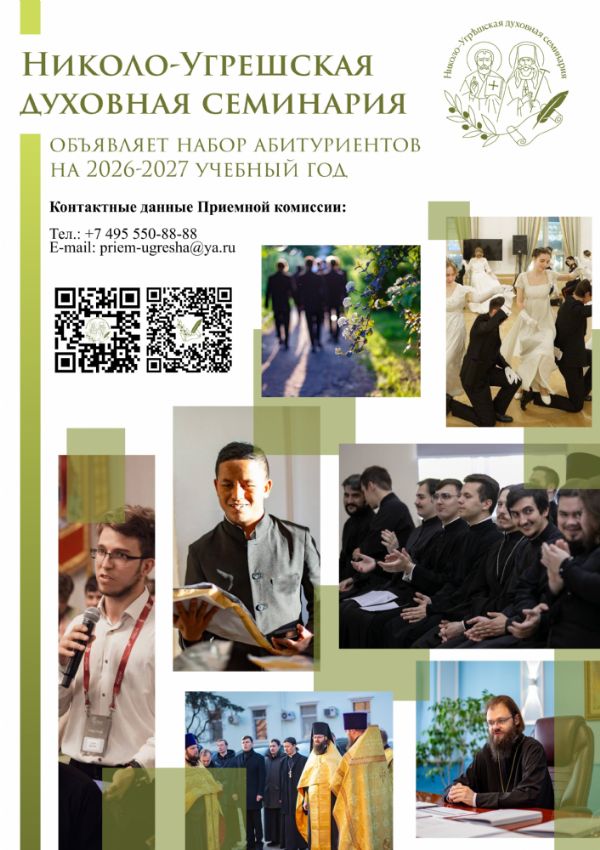 15 декабря 2025 г. в 15:00 в рамках набора на новый 2026-2027 учебный год Николо-Угрешская духовная семинария приглашает всех желающих получить богословское образование и стать священнослужителем нашей Русской Православной Церкви на день открытых дверей.
