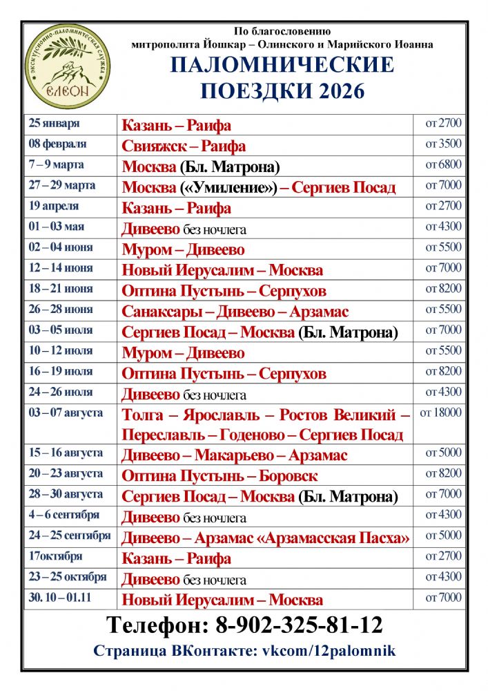 Расписание поездок Паломнической службы «Елеон» на 2026 год 74