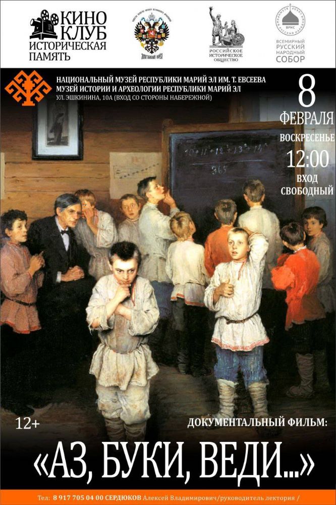 8 февраля (воскресенье) в 12:00 в Музее истории и археологии (Йошкар-Ола, ул. Эшкинина, дом 10-а, вход со стороны набережной) состоится показ документального фильма «Аз, буки, веди...».