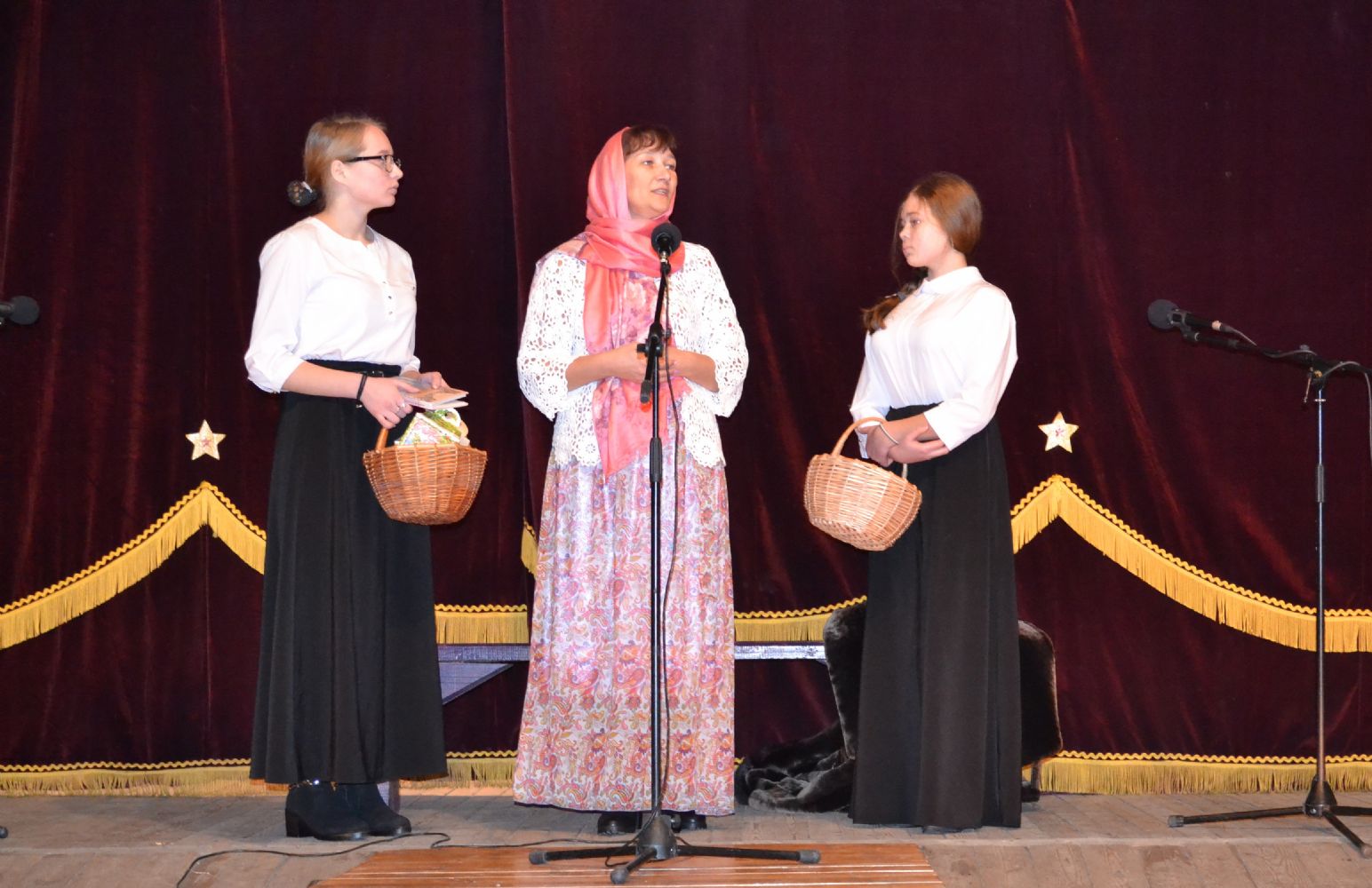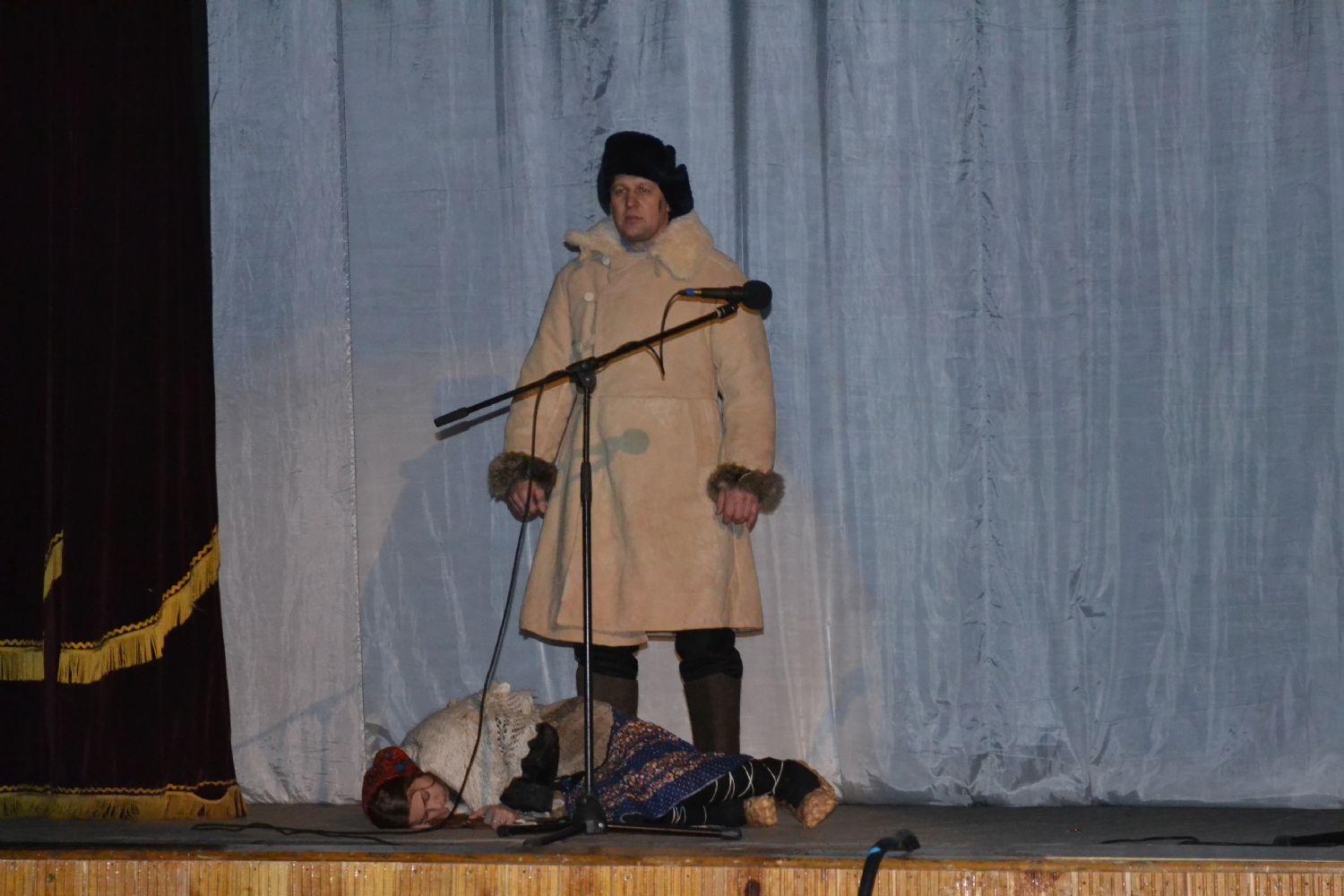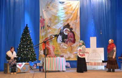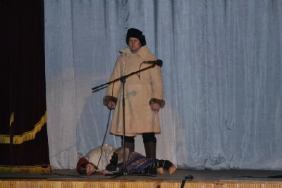 Под колокольный перезвон гаснет свет в зрительном зале Килемарского районного Дома культуры, открывается занавес, на сцене появляются герои театрализованной постановки «Счастливая сиротка» по рассказу Жохова «Мирская Захребетница».