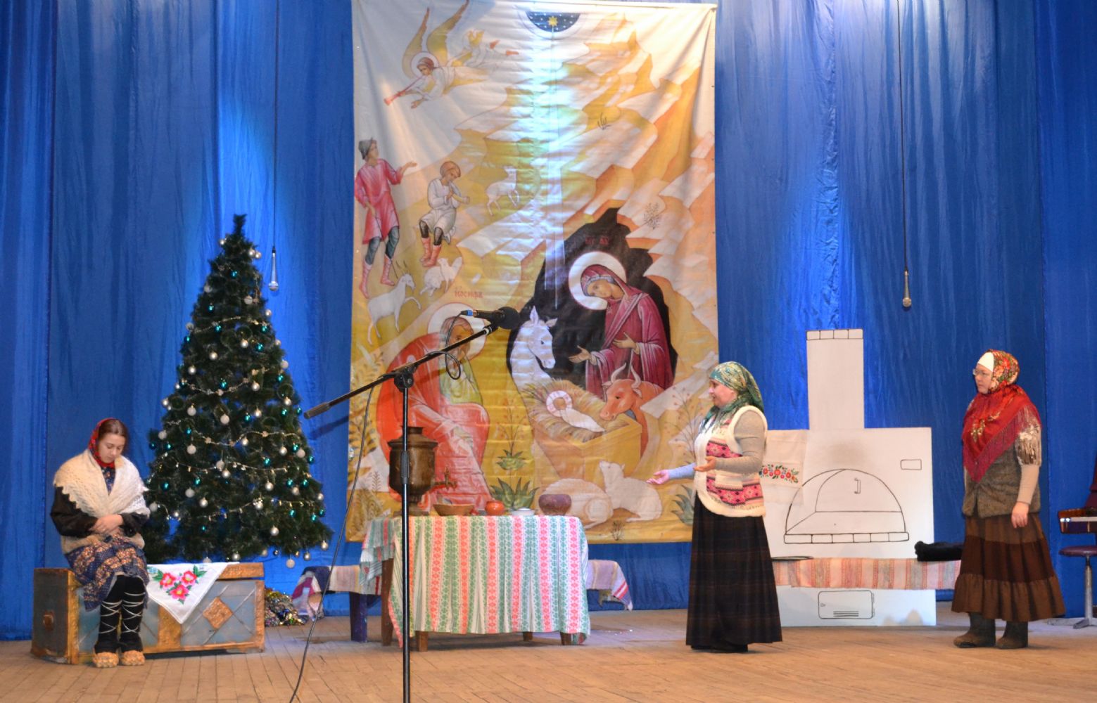 В постановке спектакля принимала участие помощница благочинного Т.Х.Черноусова, учащиеся старших классов Килемарской средней школы. Роль сиротки сыграла Аня Кулалаева. А вообще готовились все вместе: директор воскресной школы при храме святого пророка Илии С.Г.Петрова, катехизатор М.Т.Пушкарева, О.Н. Митькина, режиссер районного Дома культуры.
