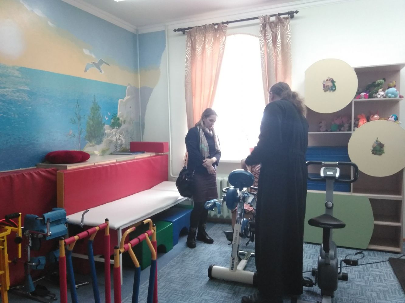 Ольга Викторовна встретилась с руководителем центра иереем Константином Домрачевым, персоналом центра, детьми и родителями, посещающими центр. Также она посетила помещения для проведения процедур и занятий, которые оснащены разнообразным оборудованием: современным массажным кабинетом с кедровой бочкой, бесконтактной гидромассажной ванной «Акварелакс», массажным креслом, парафинонагревателем, коррекционно-игровым кабинетом, где проводится нейропсихологическая диагностика, залом лечебной физкультуры с 30 тренажерами, сенсорной комнатой с сухим бассейном, «водной кроватью», пузырьковыми колоннами, звездным небом, оптоволоконными нитями, панелью для рисования флуоресцентными маркерами и светомузыкальным сопровождением.