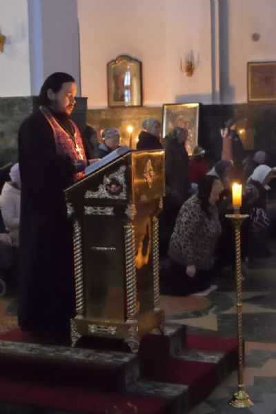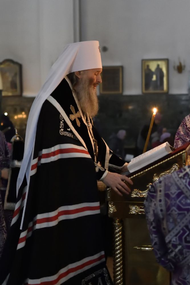 После молитв обычного начала и 69 псалма митрополит Иоанн начал чтение Великого канона. Чтение продолжили с 6 песни ключарь собора протоиерей Сергий Поглазов и клирики иереи Никифор Захаров, Артемий Промович, Евгений Самойлов.