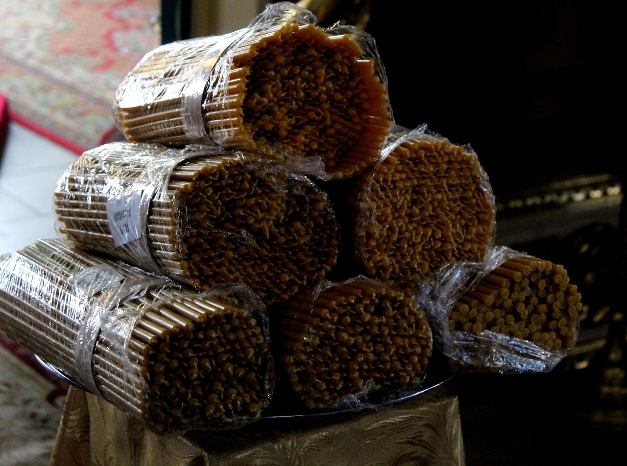 По заамвонной молитве священством во главе с архиереем было совершено славление праздника и чин освящения свечей.