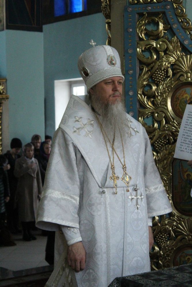 Его Преосвященству сослужили: клирик храма святого праведного Иоанна Кронштадтского г. Волжска иерей Матфей Сапаев, клирики Никольского собора иерей Сергий Першаков и диакон Иоанн Захаров.
