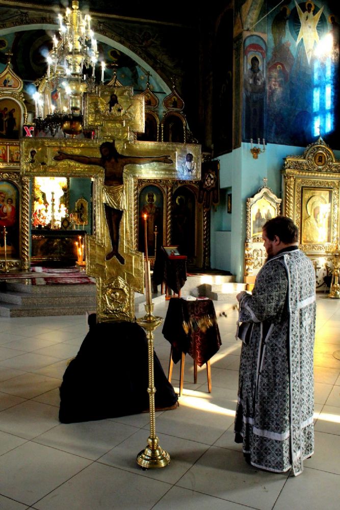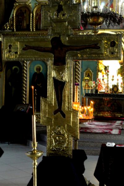 В конце службы все верующие с благоговением подходят поклониться перед Распятием, Крестом Христовым, который на пассии выносится на середину храма.