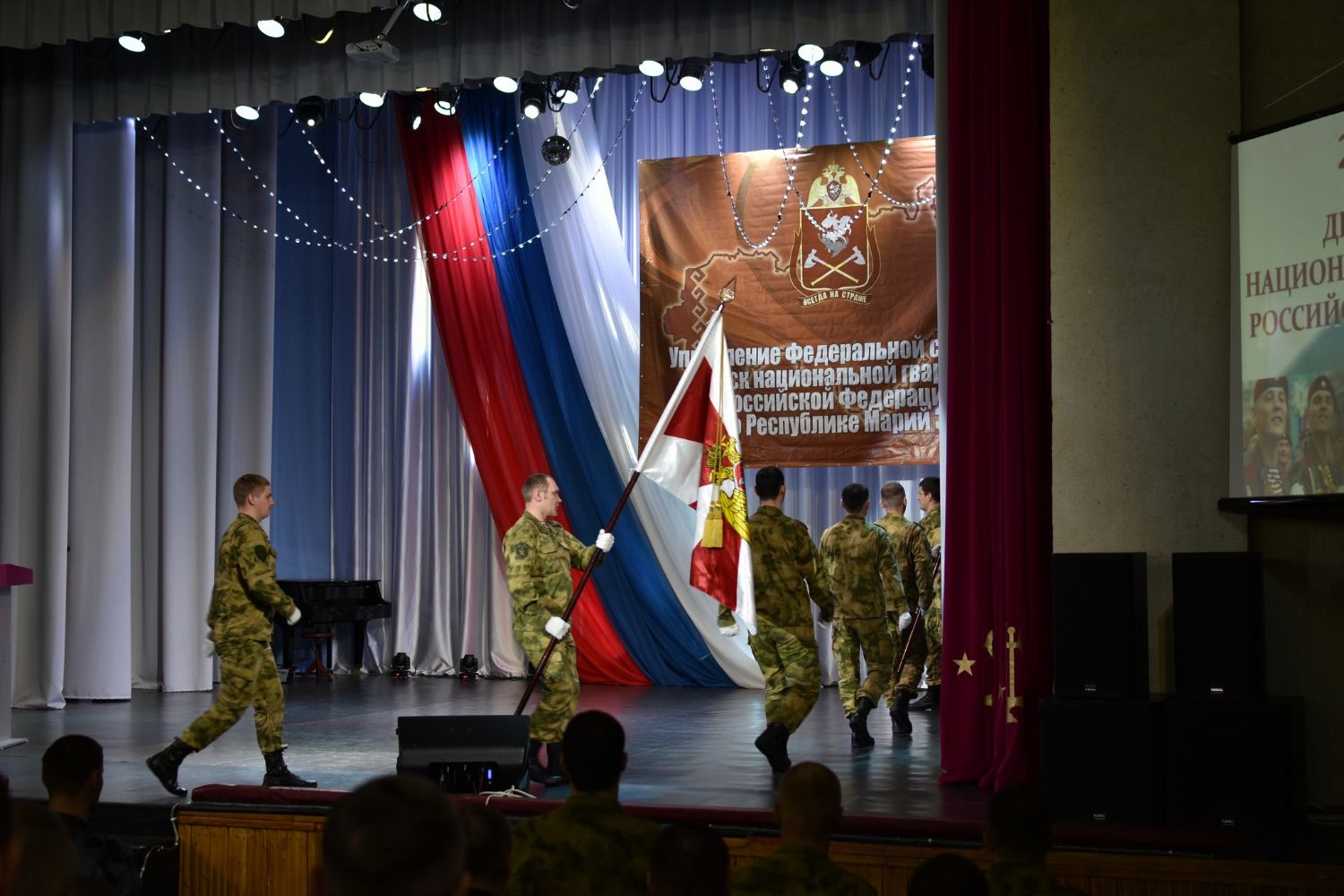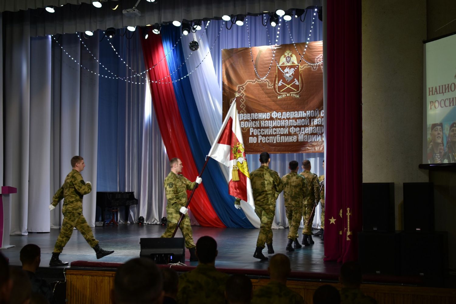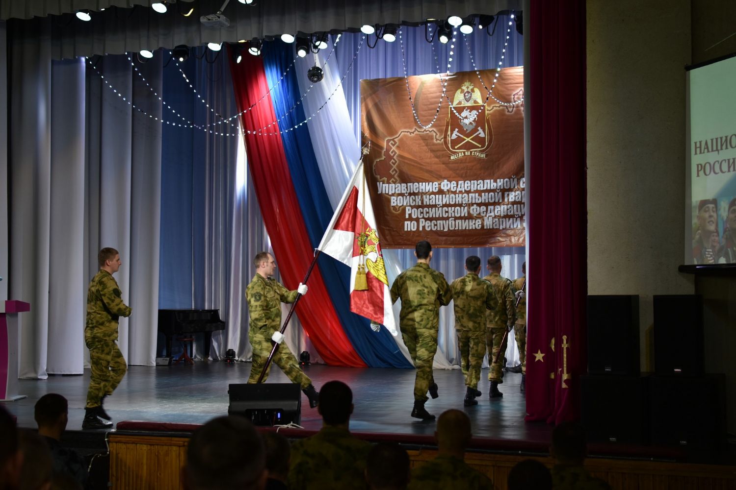 Мероприятие открылось торжественным внесением флагов России и национальной гвардии Российской Федерации при исполнении гимнов России и республики Марий Эл.