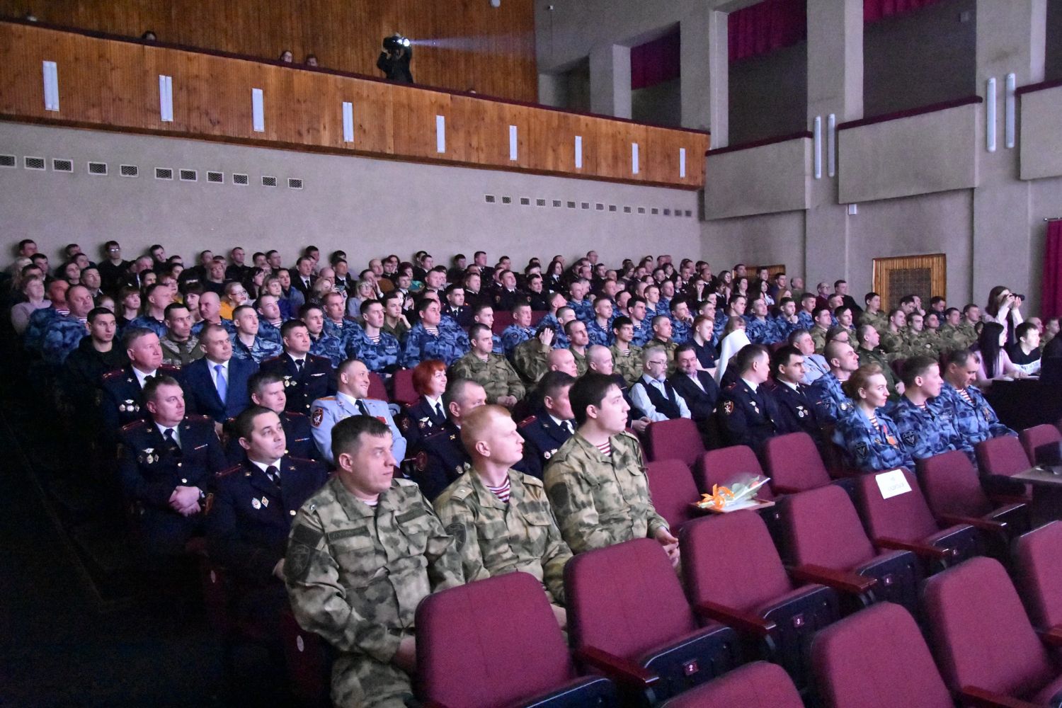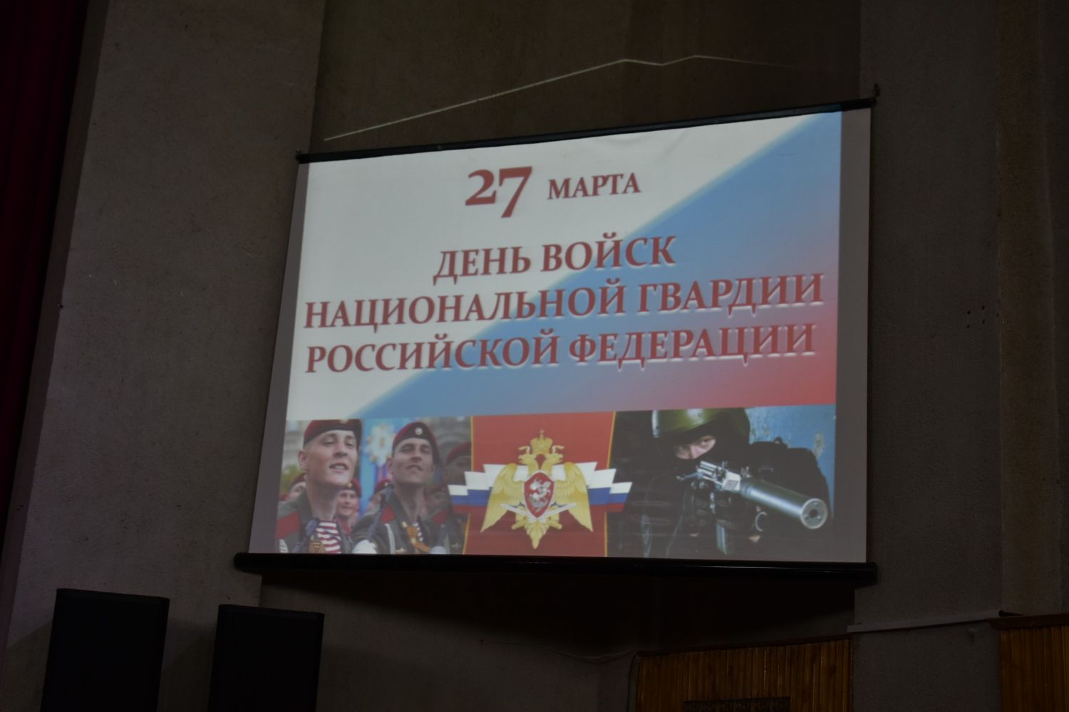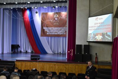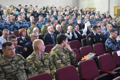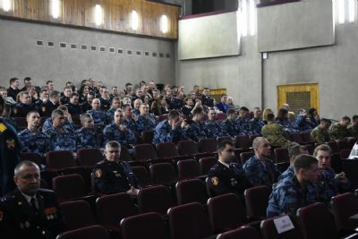 Собравшимся показали видеофильм о современной деятельности Росгвардии, созданной в 2016 г. на основе внутренних войск МВД, специальных подразделений (ОМОН, СОБР), вневедомственной охраны, а также органов по контролю за оборотом оружия (ЦЛРР).