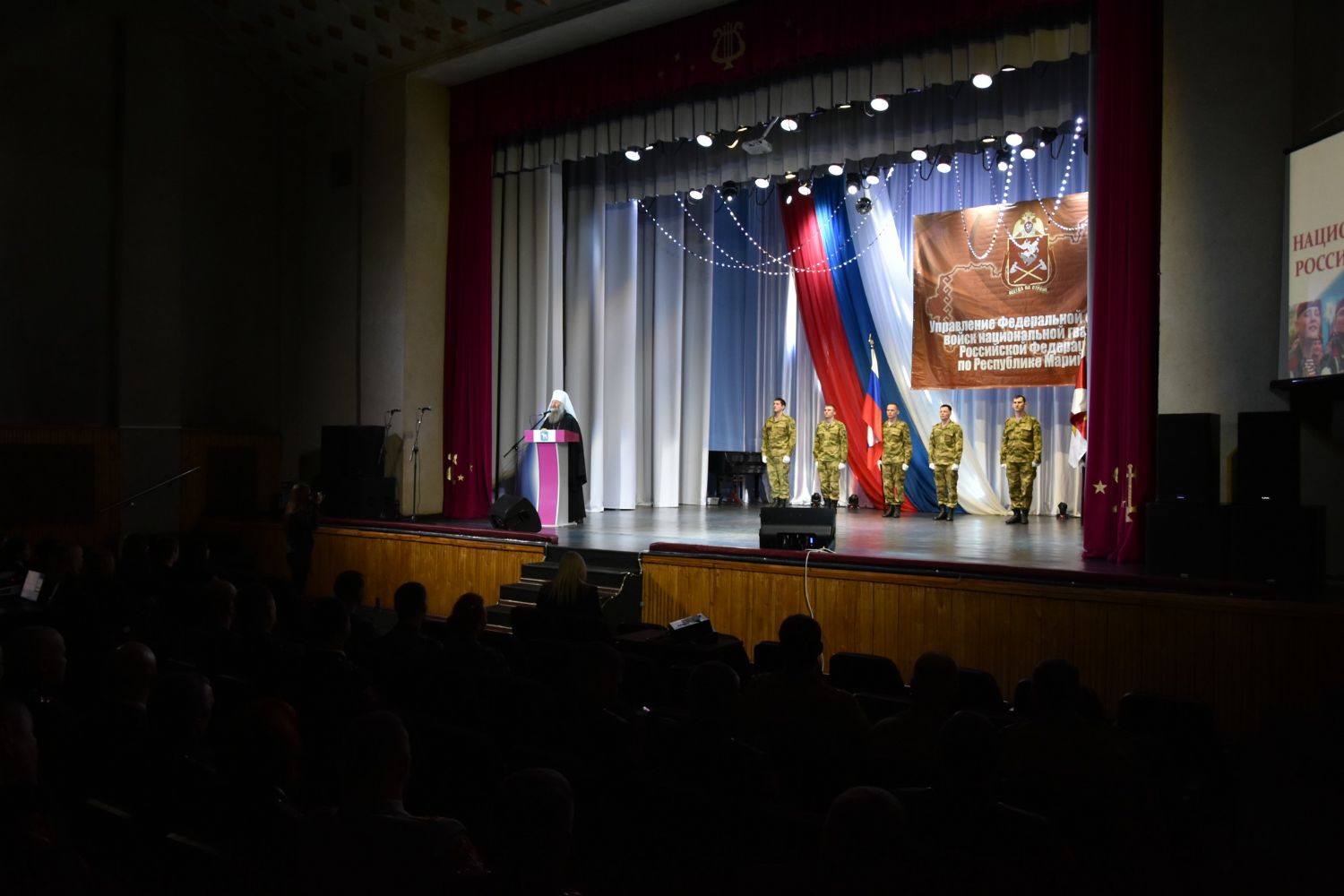 27 марта, в день 208-летия национальной гвардии Российской Федерации, митрополит Йошкар-Олинский и Марийский Иоанн посетил мероприятие во дворце культуры Российской армии.