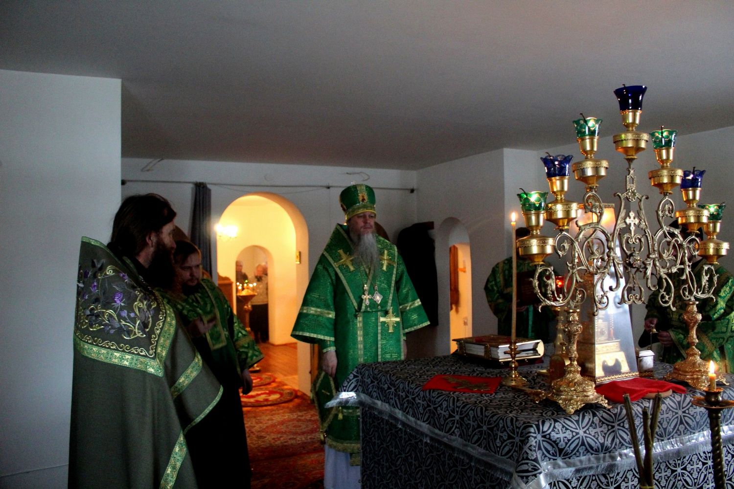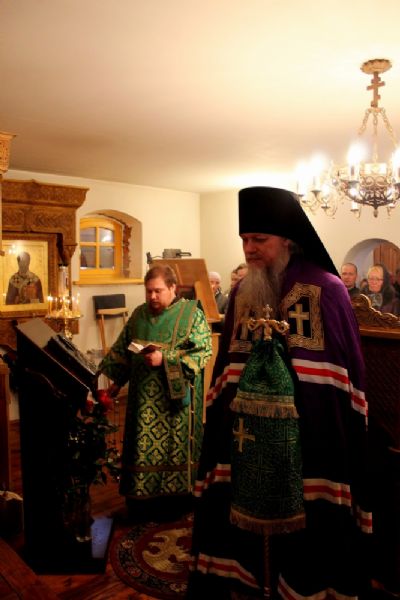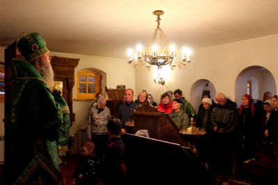 Архипастырю сослужили настоятель храма протоиерей Владимир Легач, клирик Никольского кафедрального собора г. Волжска диакон Иоанн Захаров.