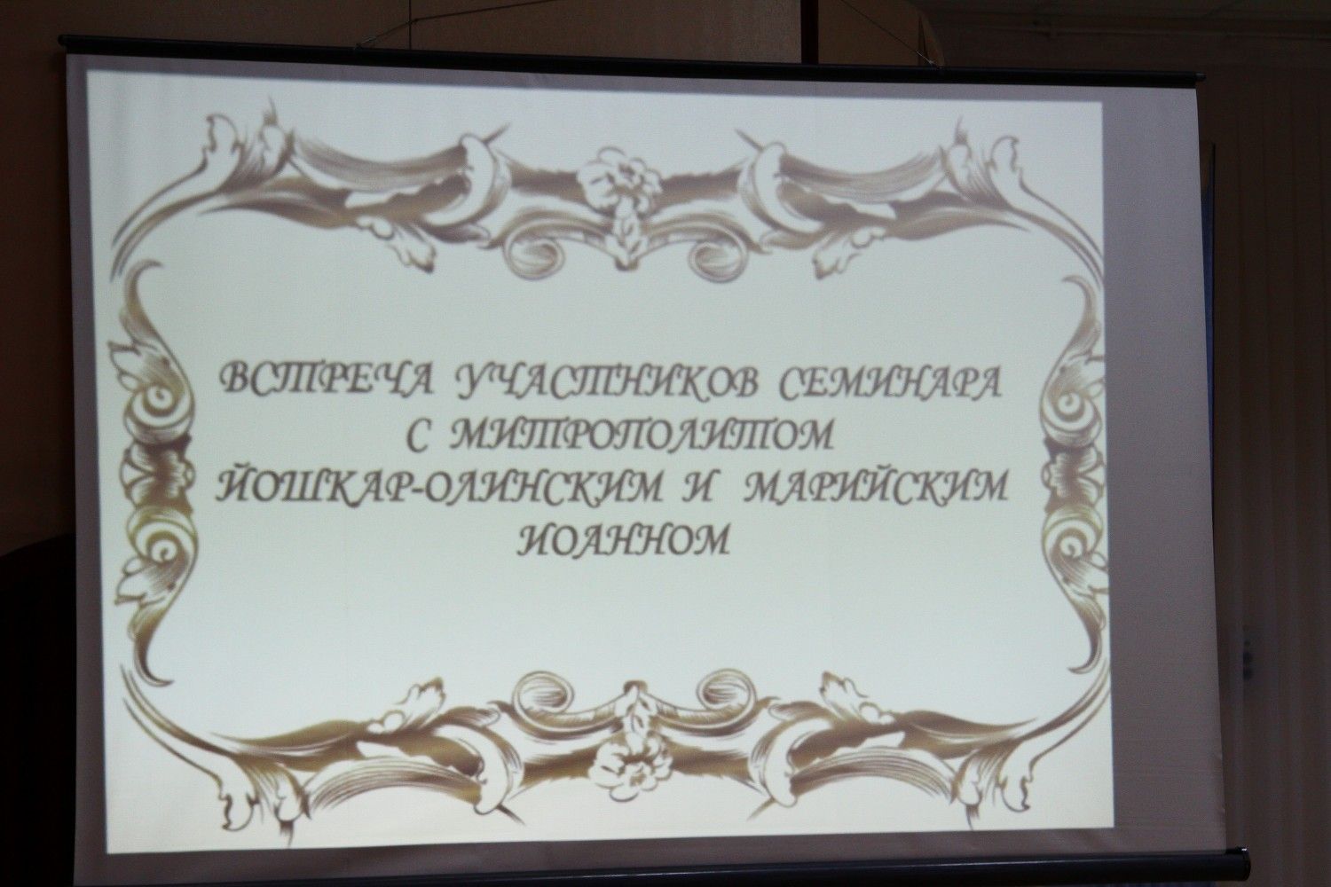 В рамках работы семинара были прочитаны лекции священниками Йошкар-Олинской и Марийской епархии, преподавателями Православных образовательных курсов: иереем Иоанном Кристевым – «Нравственное учение Господа Иисуса Христа и современный мир» и иереем Леонидом Вылекжаниным – «Секты: разновидности, опасность, особенности, противодействие».