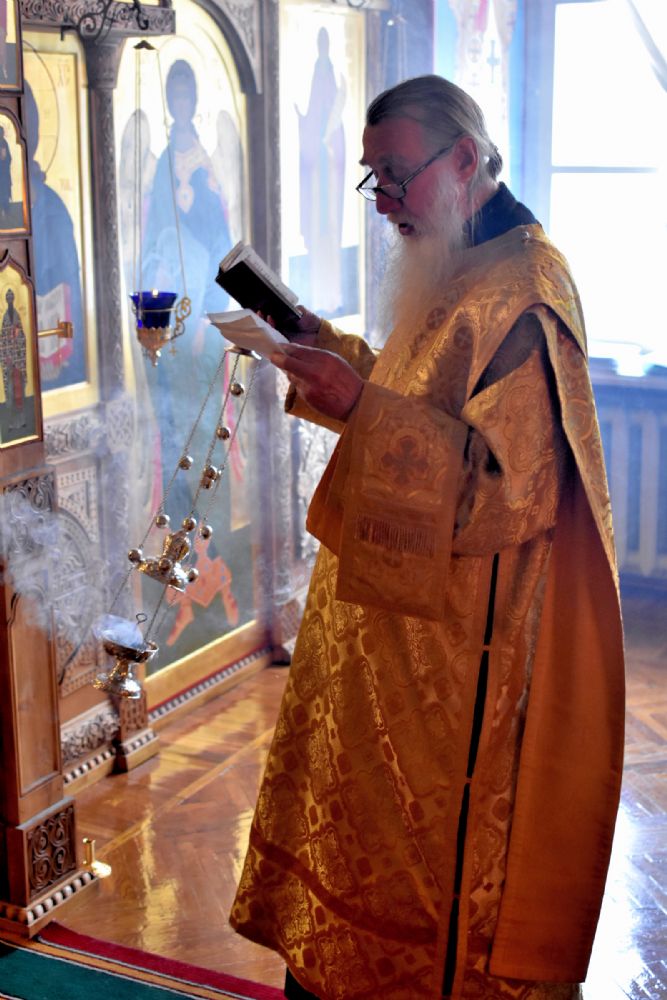 Владыке сослужили секретарь Йошкар-Олинского епархиального управления иеромонах Серафим (Пасанаев) и клирик храма Рождества Пресвятой Богородицы с. Семеновка протодиакон Михаил Козловский. Песнопения исполнял хор под руководством регента Татьяны Черновой.