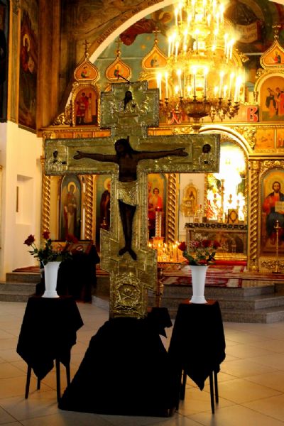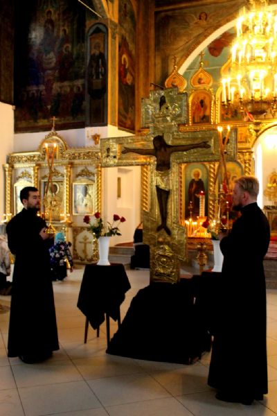 Вечером в четвертую Неделю Великого поста в Никольском кафедральном соборе г. Волжска совершен чин пассии — богослужение с чтением акафиста Страстям Христовым.