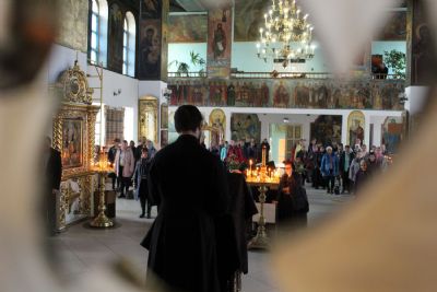 На пятой неделе Великого поста, в среду вечером, совершается утреня четверга, которую принято называть Стояние Марии Египетской. 10 апреля епископ Волжский и Сернурский Феофан совершил эту службу в Никольском соборе г. Волжска в сослужении клириков собора и клирика храма святого праведного Иоанна Кронштадского г. Волжска иерея Матфея Сапаева.