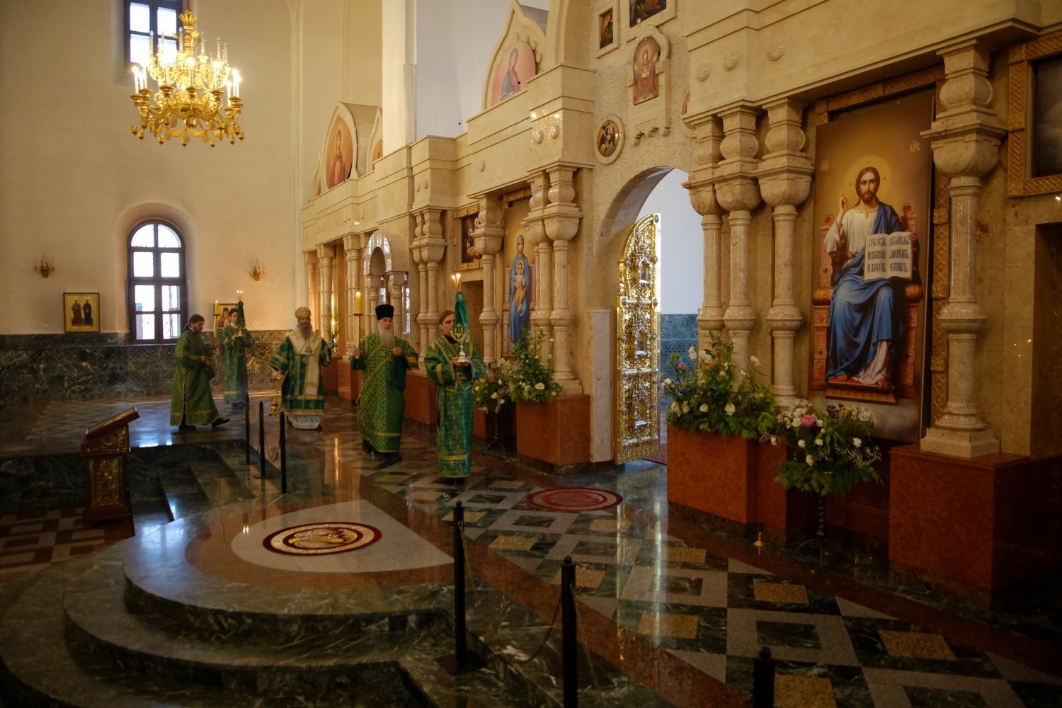 Сослужили ему: секретарь Йошкар-Олинского епархиального управления иеромонах Серафим (Пасанаев), ключарь собора протоиерей Сергий Поглазов, клирики иереи Никифор Захаров, Артемий Промович, Евгений Самойлов, диаконы Андрей Дружинин, Игорь Коваль и клирик храма Рождества Пресвятой Богородицы с. Семеновка протодиакон Михаил Козловский. Песнопения исполняли младшая и старшая группы детско-юношеского хора «Благовест».