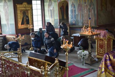После за амвонной молитве Владыка с сослужащим духовенством последний раз в этом году прочитал молитву Ефрема Сирина и сделал земные поклоны.