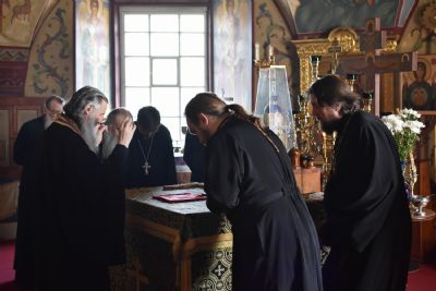 23 апреля в Успенском храме Владыке сослужили настоятель храма протоиерей Сергий Филонов, клирики храма иереи Алексий Михеев, Никита Иванов и диакон Александр Мельников.
