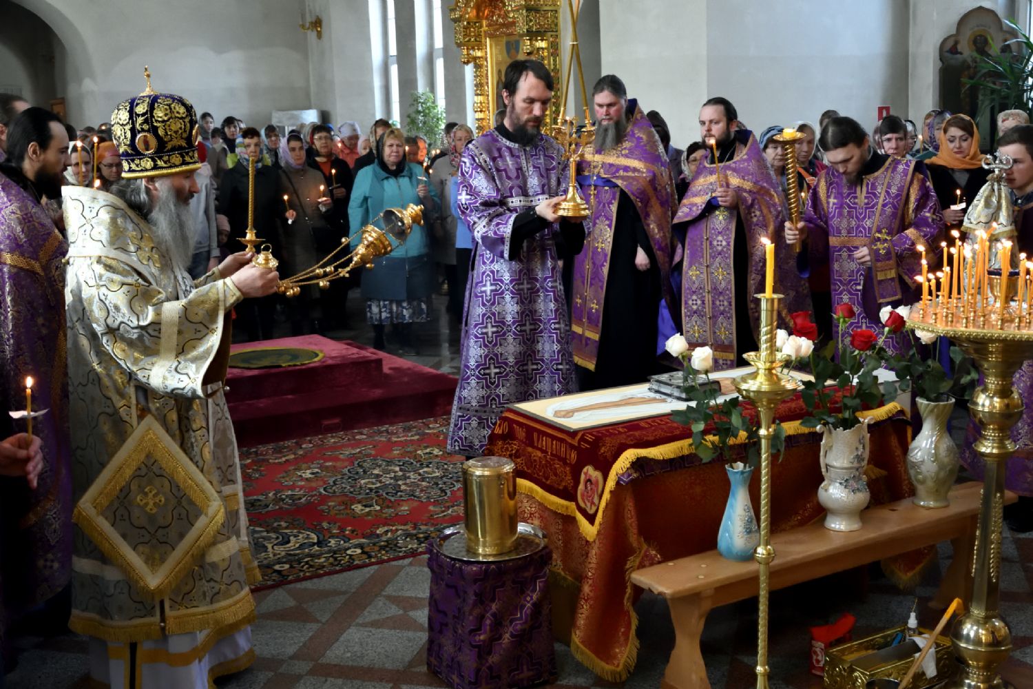 Читались отрывки из послания апостола Павла Коринфянам (1-2 глава) о слове о Кресте и из Евангелий от Матфея, Луки и Иоанна о событиях во время и после Распятия Иисуса Христа.