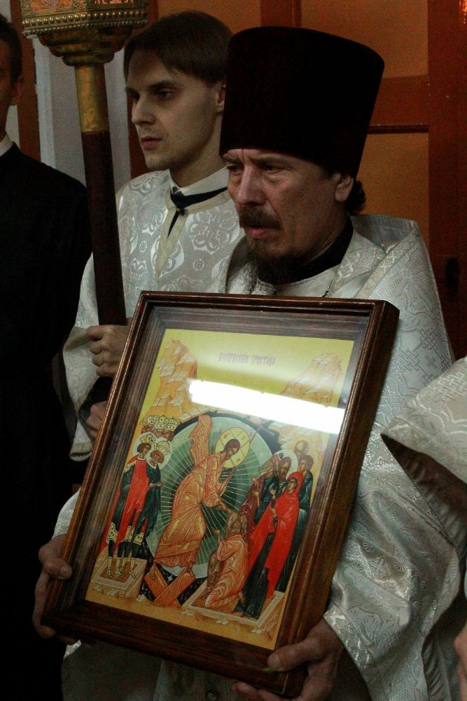 В полночь в сонме духовенства и верующих с пением воскресной стихиры: «Воскресение Твое, Христе Спасе, ангели поют на небесех…» владыка Феофан совершил пасхальный крестный ход вокруг собора, символизирующий шествие Церкви Христовой к Воскресшему Христу.