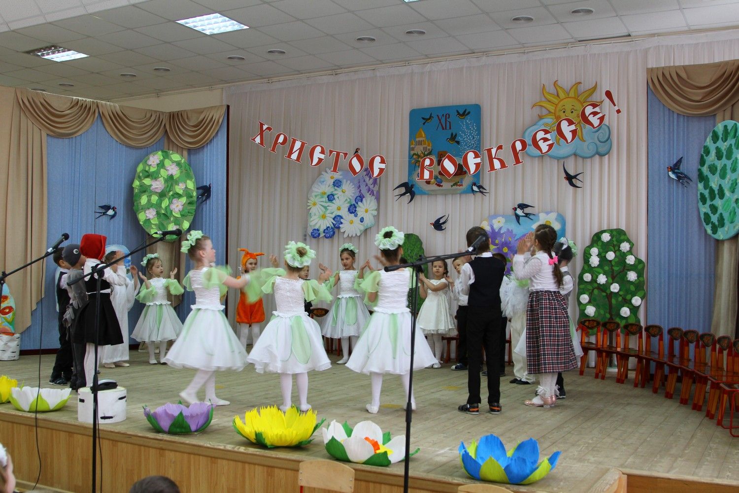 Концерт открылся выступлением младшей группы. В продолжение праздника ребята старшей группы показали свои творческие номера: играли в пасхальные игры, пели песни, танцевали и прославляли Воскресшего Христа.