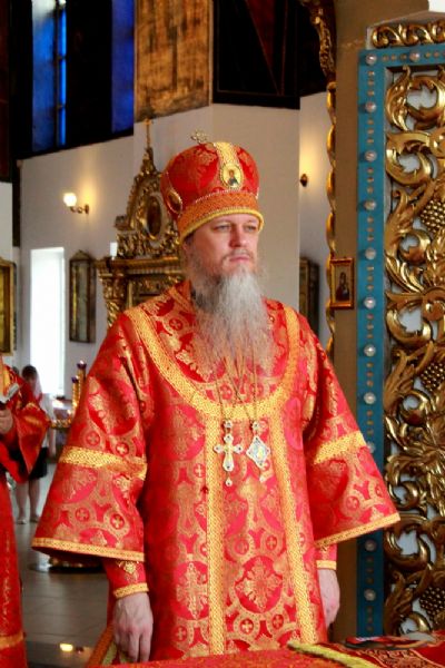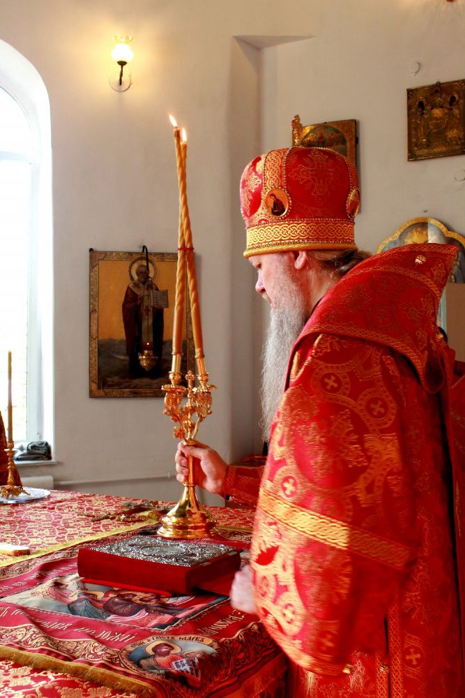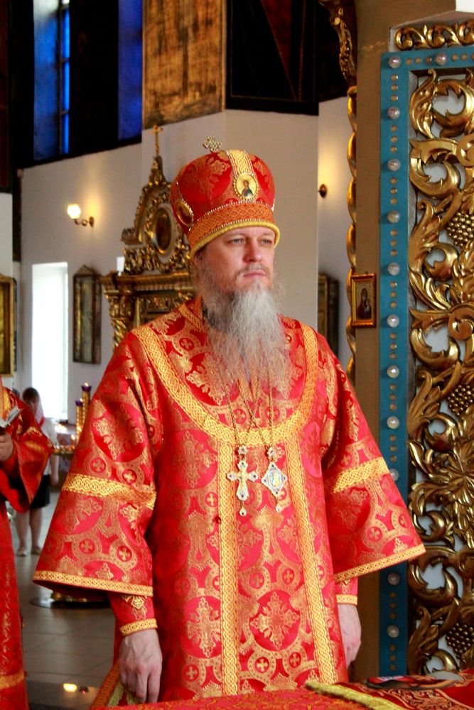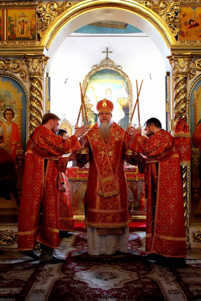 Его преосвященству сослужили клирики собора: иерей Сергий Першаков, иерей Алексей Скрябин, иерей Александр Усков, диакон Иоанн Захаров.