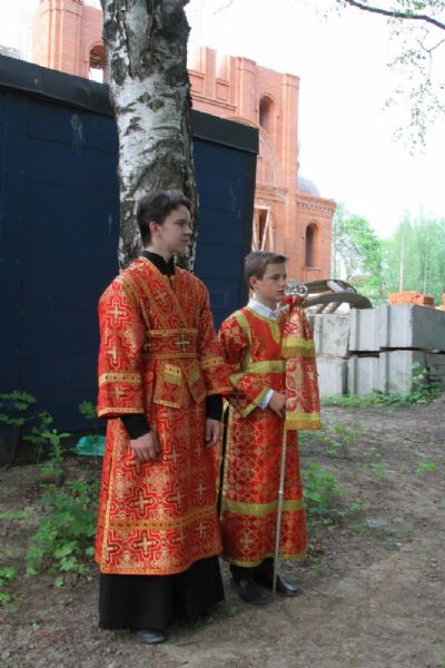 После этого состоялся крестный ход вокруг строящегося храма. Владыка окропил стены храм и молящихся святой водой.
