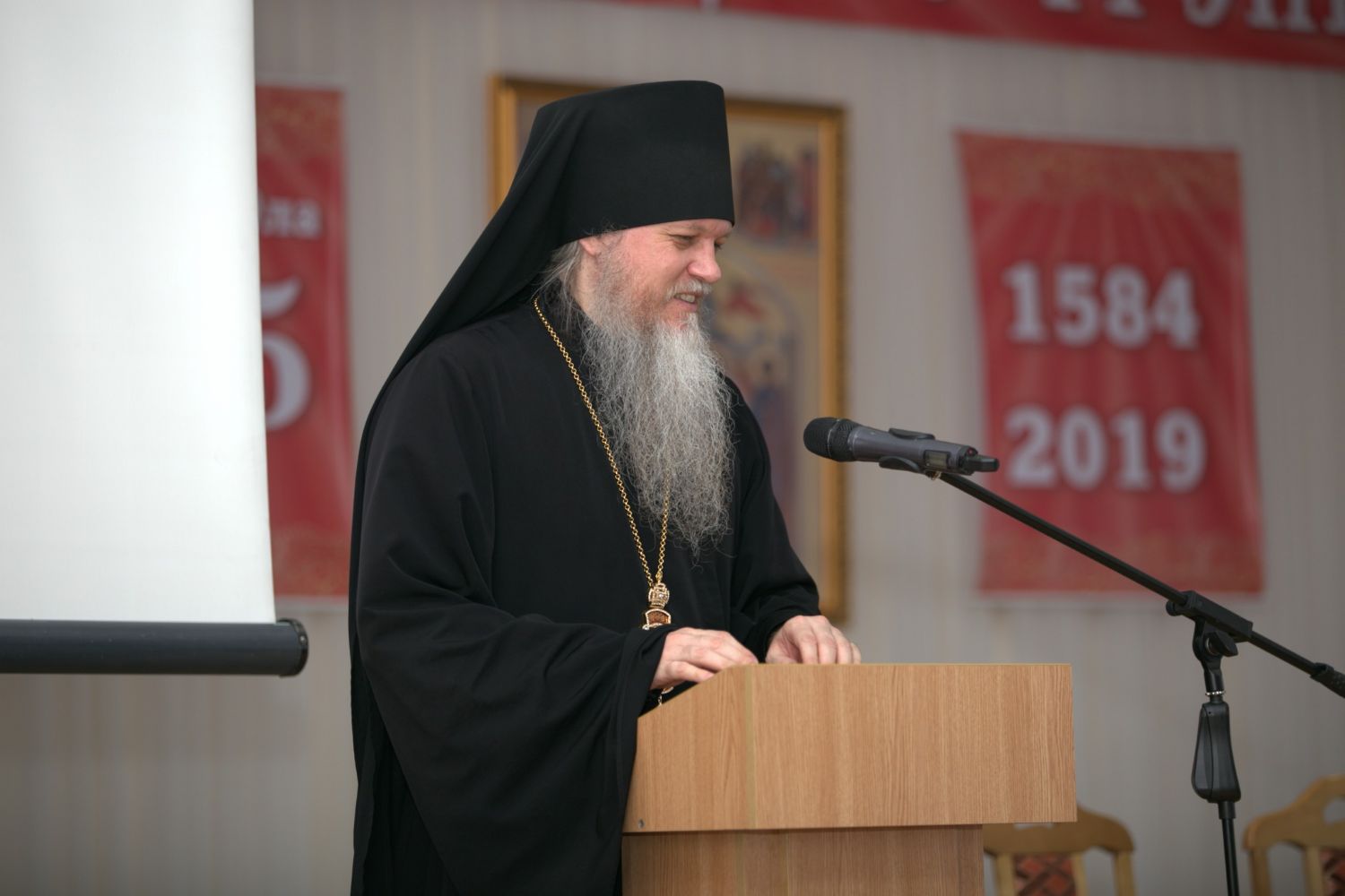 Сегодня рад приветствовать всех участников Мироносицких чтений и от всего сердца хочется пожелать всем нам душевного мира, главного сокровища нашей духовной жизни, доброго здравия телесного, чтобы мы многие и благая лета смогли потрудиться во славу Божию для Церкви Христовой, каждый на том месте, на которое Господь поставил нас с вами. Желаю нам радости, помощи Божией, и чтобы наша жизнь всегда протекала и совершалась под покровом Пречистой Божией Матери. Помощи Божией всем нам!»