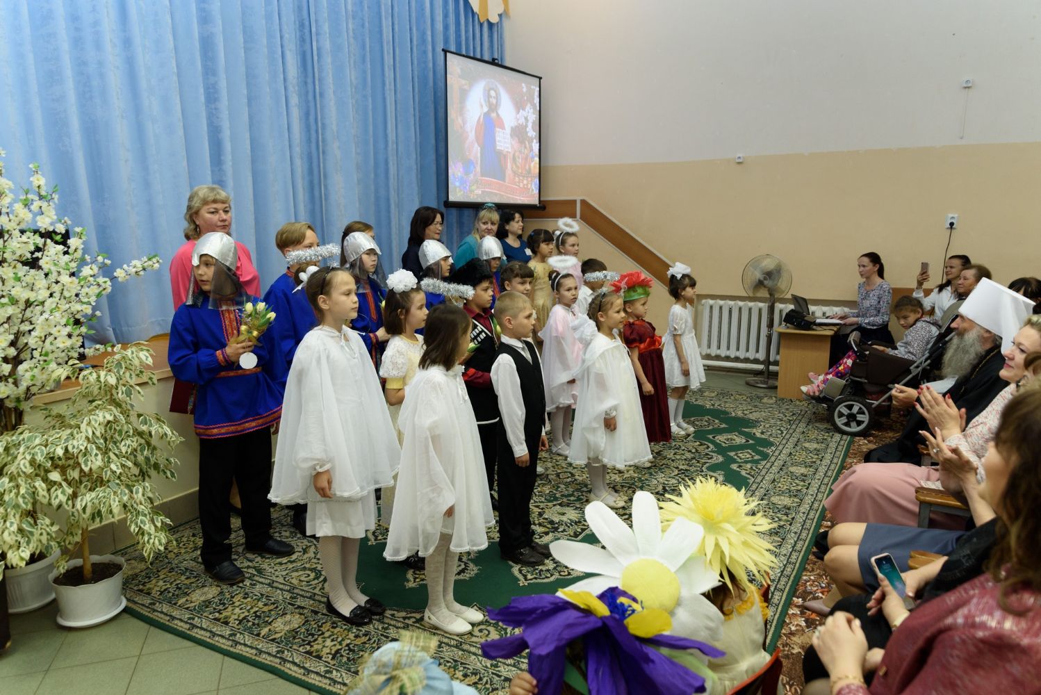 Воспитанники центра, руководители и актеры представили гостям концертно-развлекательную программу: исполнили танцы, песни, стихи и спектакль по произведению протоиерея Валериана Кречетова "Вера маленького мальчика".