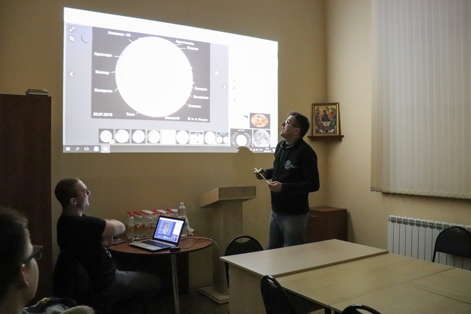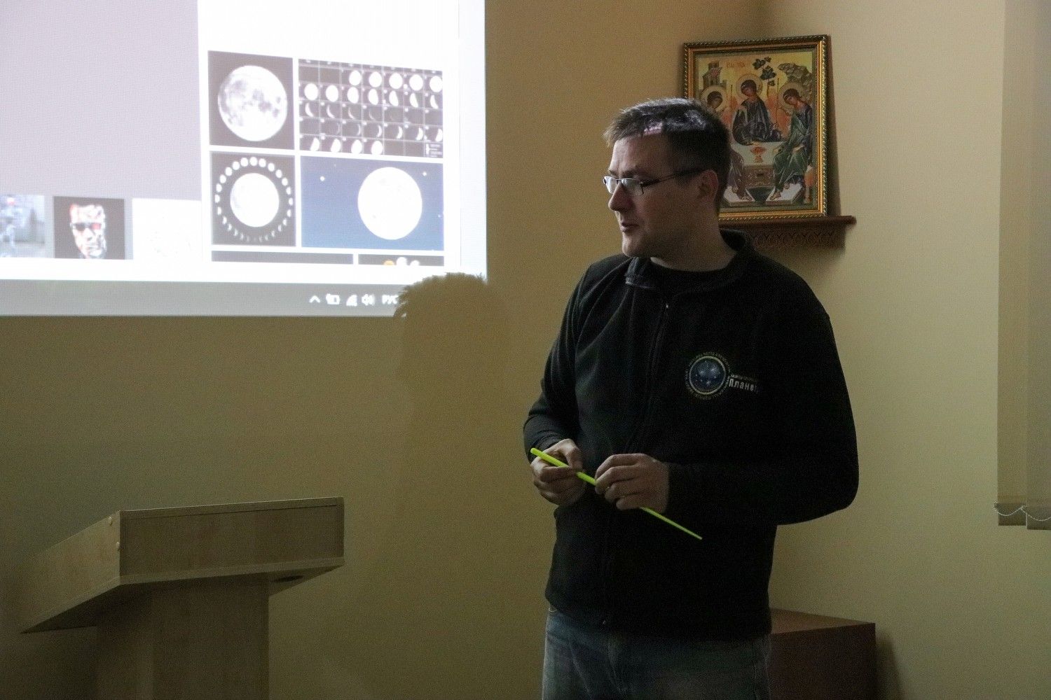 Завершилась программа «Ночи музеев» в спокойном традиционном русле. Ребята из клуба любителей астрономии «Планета X» провели замечательную беседу о космосе в лекционном зале музея истории Православия. Почётным гостем вечера стал директор Йошкар-Олинского Передвижного Планетария Роман Станиславович Соболев, чьи авторские лекции уже неоднократно собирали аншлаги в стенах нашего уютного музея.