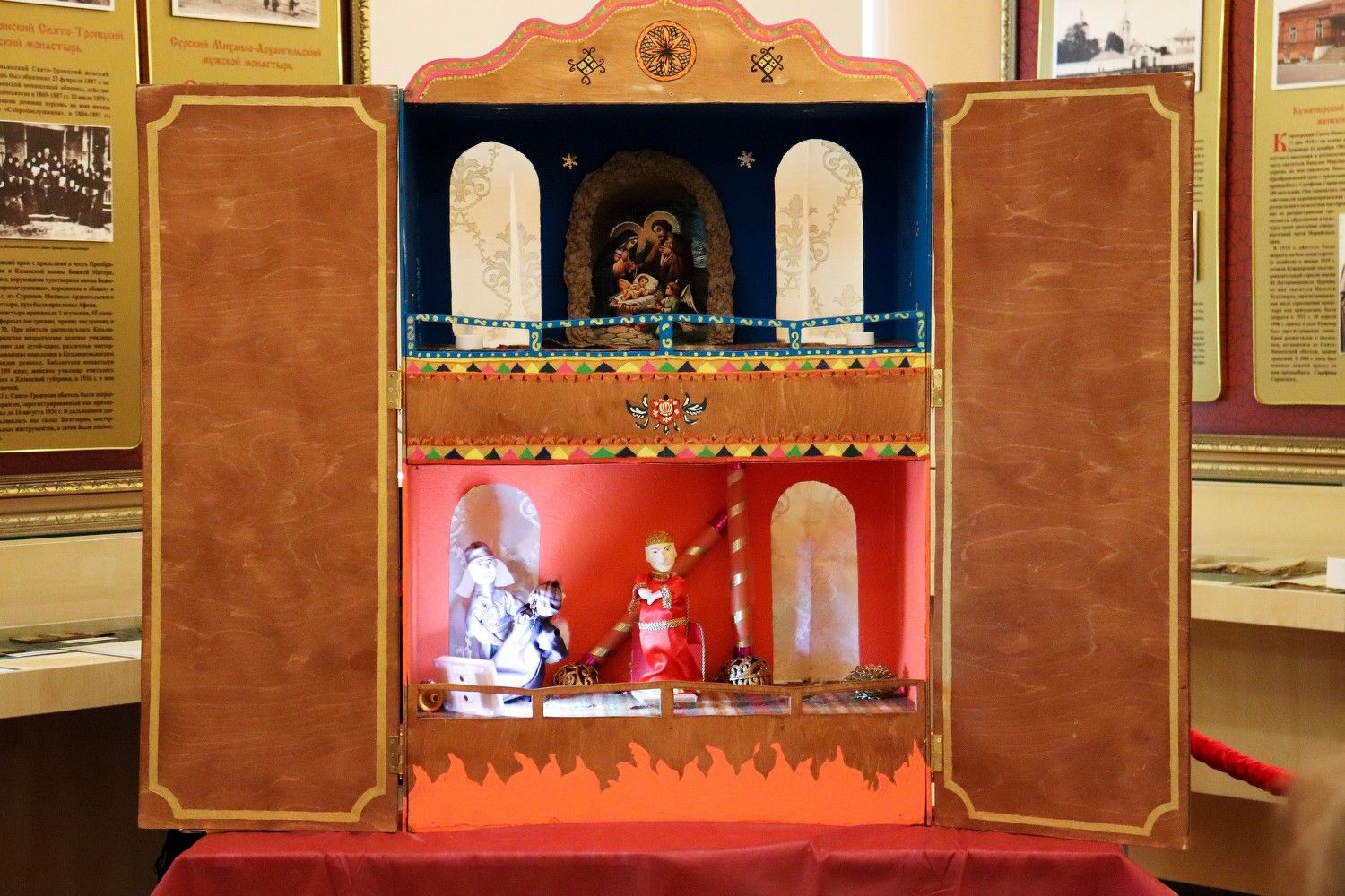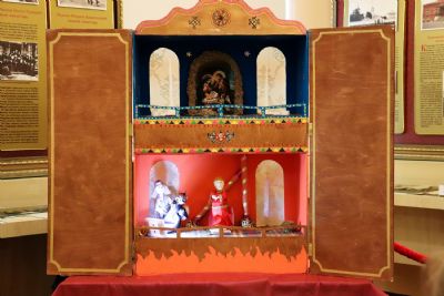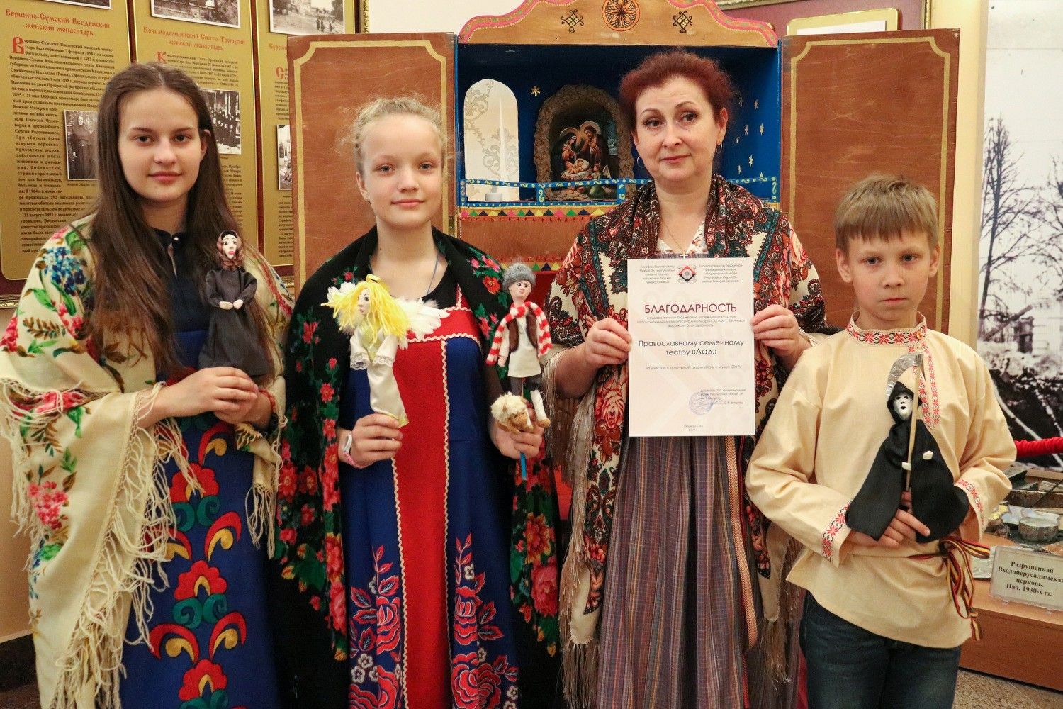 Ровно с 16 часов в экспозиционном зале началось необычайное оживление: для наших посетителей гостеприимно распахнул свои двери самый настоящий вертеп от православного семейного театра «Лад». Молодые актёры представили спектакль по мотивам библейских событий «Смерть царя Ирода».