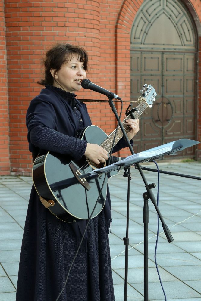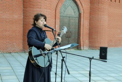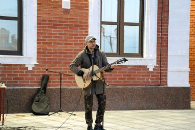 Продолжило музыкальную программу выступление автора-исполнителя Митяковой Анны Валерьевны. Приятные душевные песни невольно заставляли многих прогуливающихся горожан и туристов останавливаться возле музейной площадки в творческом настрое и размышлениях. Особенно неожиданной для всех стала просьба одного из слушателей авторского концерта о добровольном выступлении на нашей открытой площадке. Стоит отметить, что данный шаг был несколько экстравагантен для многих присутствующих. Но выступление загадочного гитариста-любителя пришлось гостям нашего музея по душе.