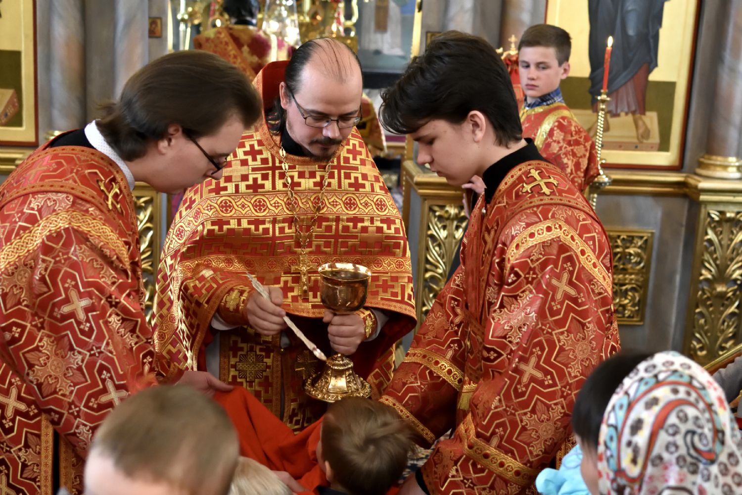 Песнопения исполнял хор храма под руководством регента Александры Ивановой.
