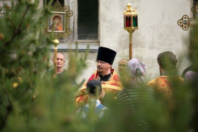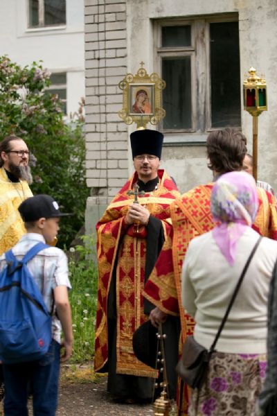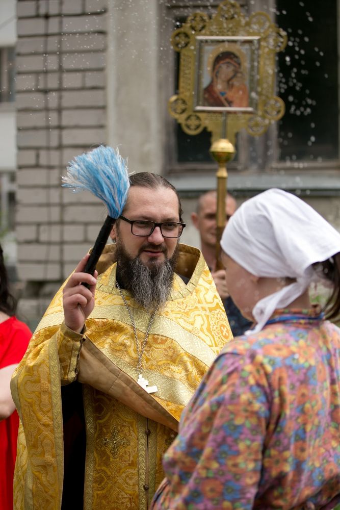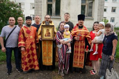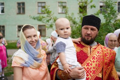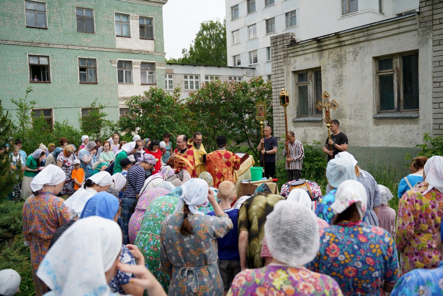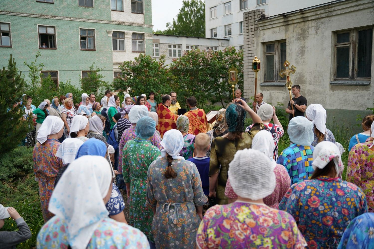На территории Перинатального центра крестный ход встречал иерей Дмитрий Дьяков, ответственный за связь с общественностью, и сестра милосердия молебной комнаты данного учреждения Людмила Ямбердова. Был отслужен водосвятный молебен Феодоровской иконе Божией Матери, на котором вместе с крестоходцами молились и беременные женщины родильного отделения Перинатального центра. В крестном ходе приняли участие в том числе и семьи, получающие помощь в отделе социального служения епархии. После молебна детям из этих семей были разданы билеты на бесплатное посещение аттракционов в Парке культуры.