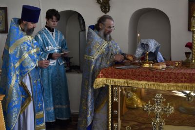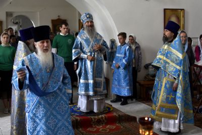 Владыке сослужили клирик монастыря иерей Михаил Лежнин, настоятель храма Казанской иконы Божией Матери с. Нурма иерей Александр Коваль и клирик храма Рождества Пресвятой Богородицы с. Семеновка протодиакон Михаил Козловский. Песнопения исполнял детско-юношеский хор «Благовест» под руководством регента Татьяны Черновой.