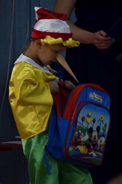 Ребята, родители и воспитатели показали представление о приключениях Буратино и Мальвины, исполнили песни о школе и детском садике и поиграли в развивающие игры. Особо детям понравилось наглядное изображение борьбы со страстями через прокалывание шаров, изображающих пороки, остриями, уподобляемыми добродетелям.