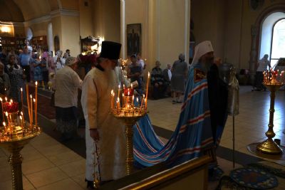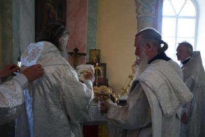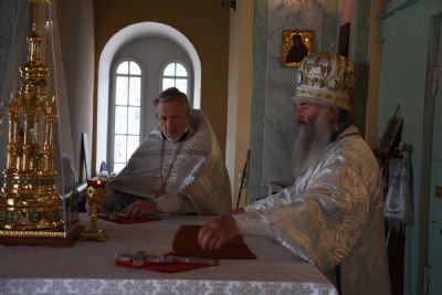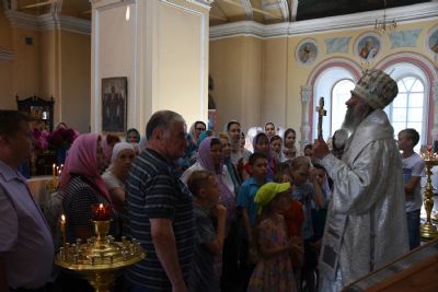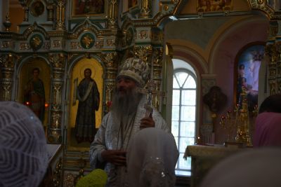 Владыке сослужил настоятель храма протоиерей Николай Барсуков и клирик храма Рождества Пресвятой Богородицы с. Семеновка протодиакон Михаил Козловский.