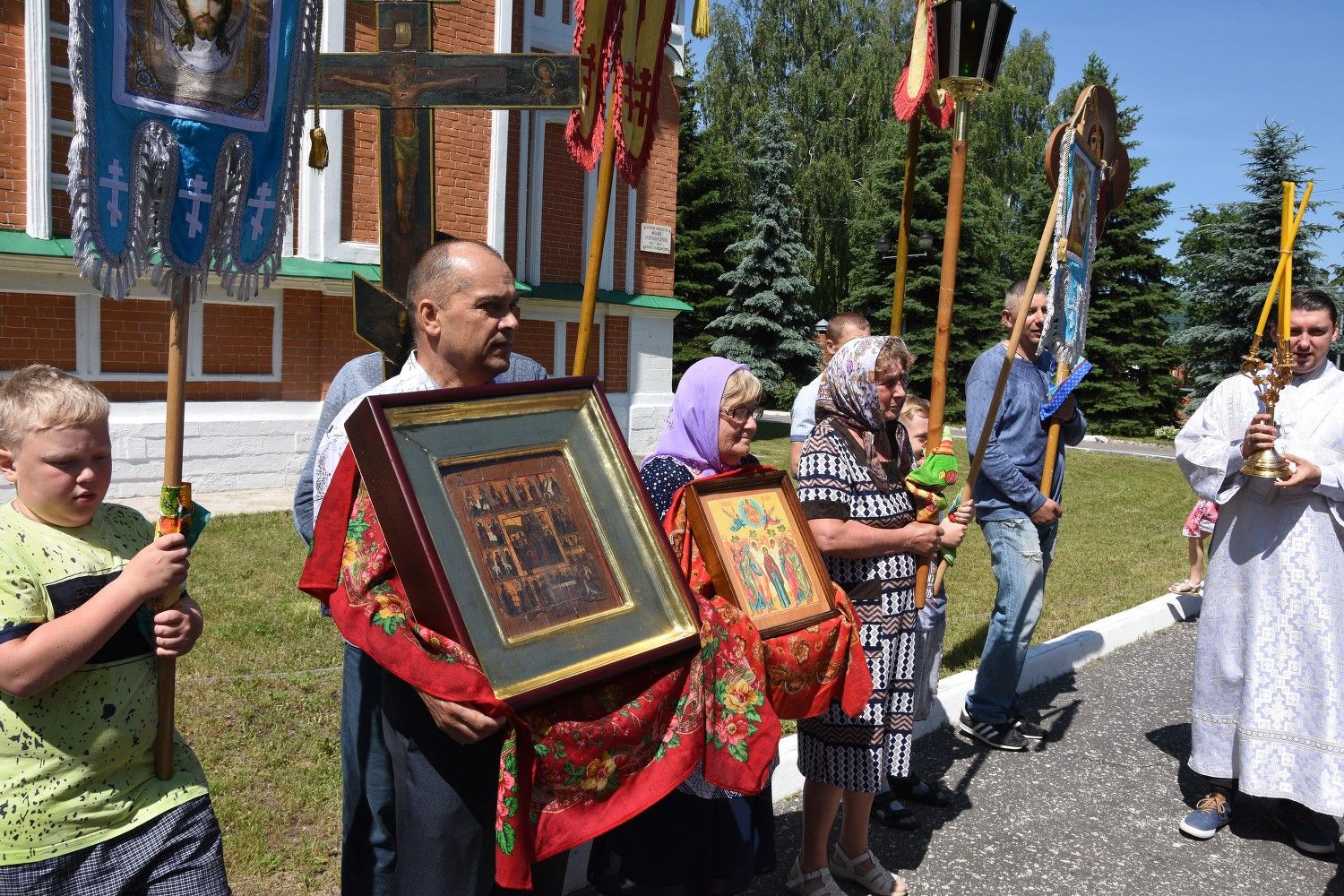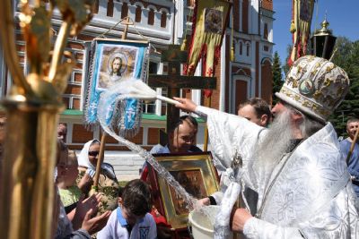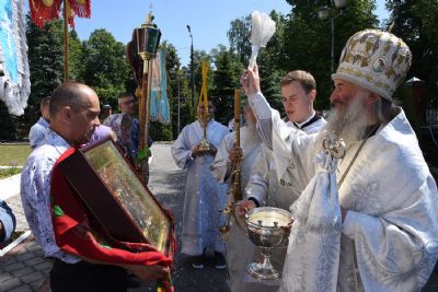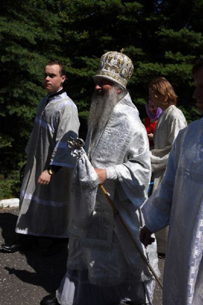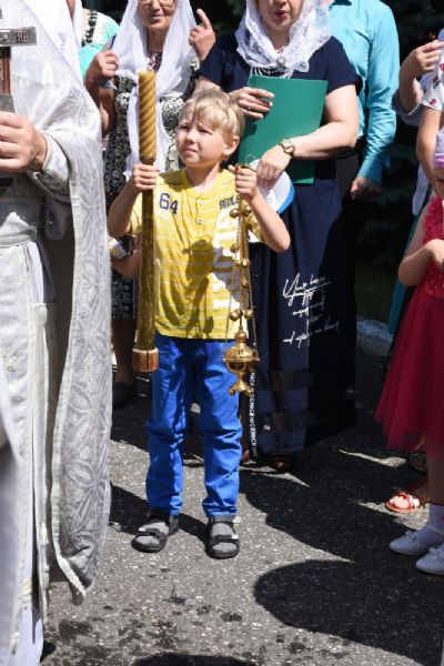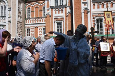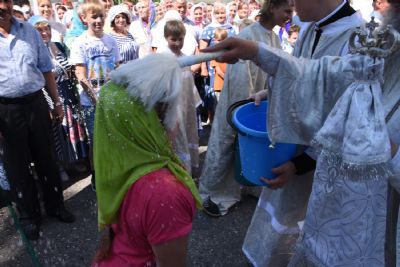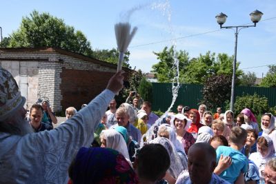 По отпусте Божественной литургии состоялся крестный ход вокруг храма с окроплением святой водой молящихся.