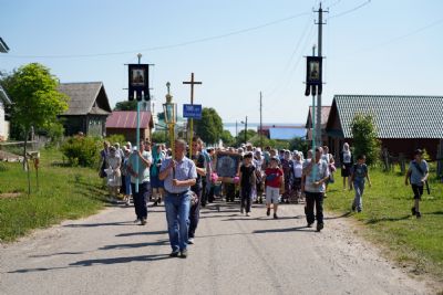 В деревнях, где проходил крестный ход ждали празднично накрытые столы, его встречали на подходе, старались пройти под иконой и батюшка щедро окроплял их святой водой. Останавливались и встречные машины, люди так же стремились пройти под иконой. А крестный ход уверенно шел вперед, в село Усола, где по пути их ожидали прихожане Свято-Духовского храма и его настоятель иерей Александр Малинов.