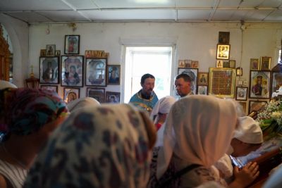 Первые остановки в соседних деревнях Нижние и Верхние Шалоболки. В каждой служился молебен, а в Кулаково у разрушенного храма равноапостольных Константина и Елены – настоятель церкви села Владимирское иерей Алексий Васюткин совершил водосвятный молебен и окропил всех святой водой.