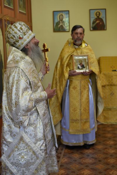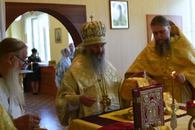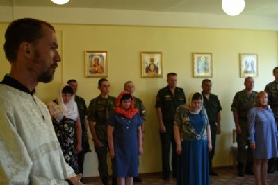 Владыке сослужили полковой священник иерей Георгий Колотов, настоятель храма преподобного Серафима Саровского г. Йошкар-Ола протоиерей Александр Бачурин и клирик храма Рождества Пресвятой Богородицы с. Семеновка протодиакон Михаил Козловский. Песнопения исполнял хор под руководством регента Татьяны Черновой.