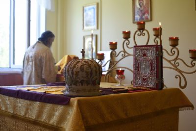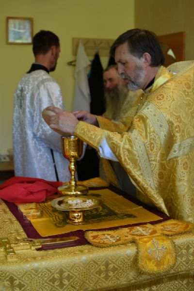 Богослужение началось торжественной встречей архипастыря и облачением в центре храма. Читались отрывки из послания к Евреям (7-8 главы) о Христе как Первосвященнике и из евангелия от Матфея (5 глава) о апостолах как свете мира.