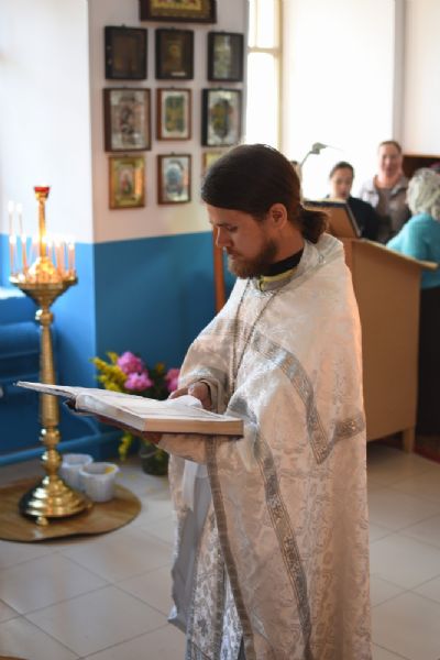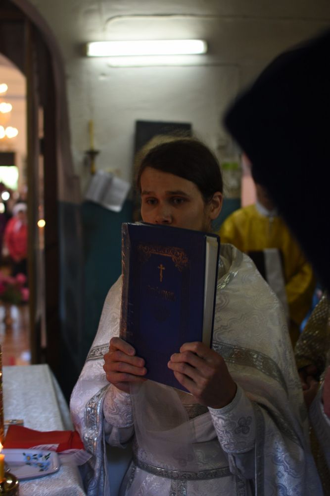 Богослужение началось торжественной встречей и облачением в центре храма. Читались отрывки из Деяний апостолов (25 глава) защитительная речь апостола Павла перед Агриппой и Фестом и из Евангелия от Иоанна (16 глава) часть прощальной беседа Иисуса Христа с учениками.