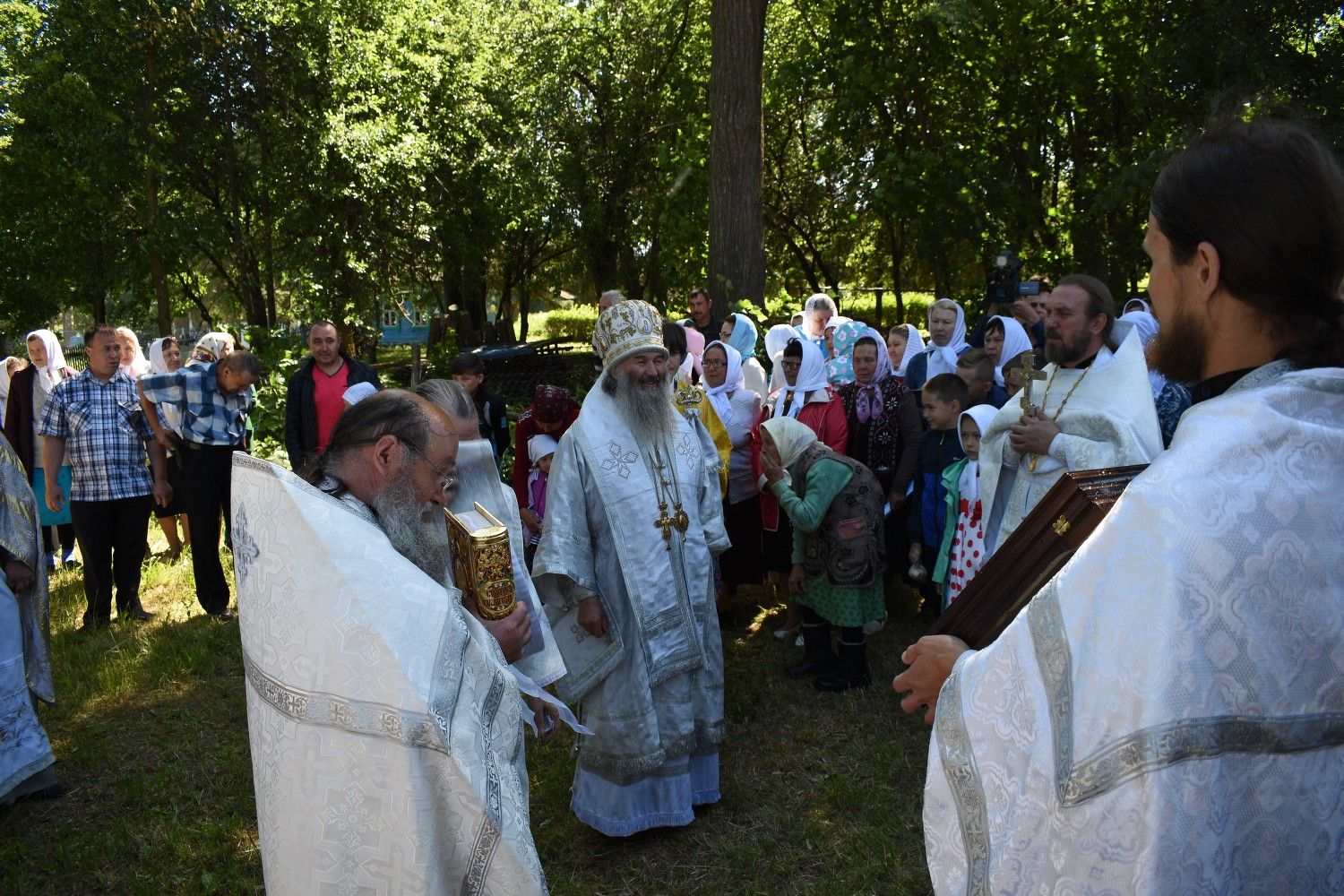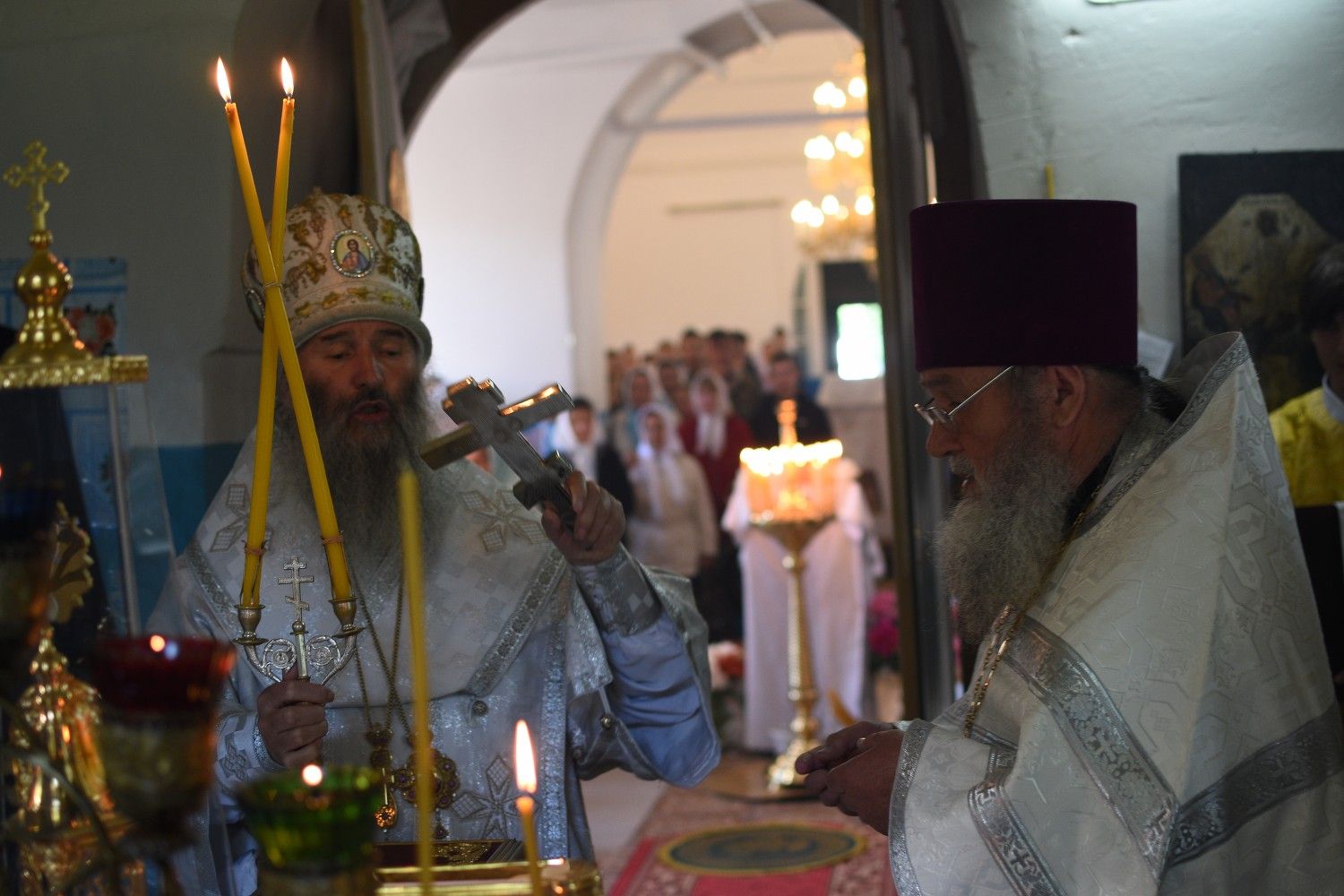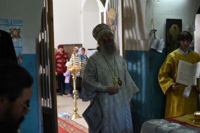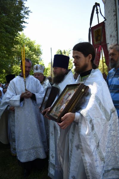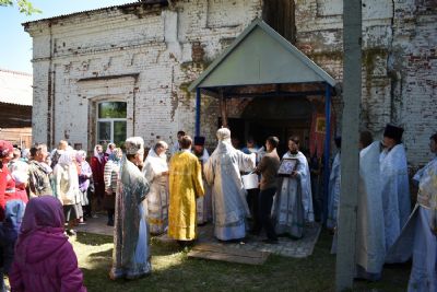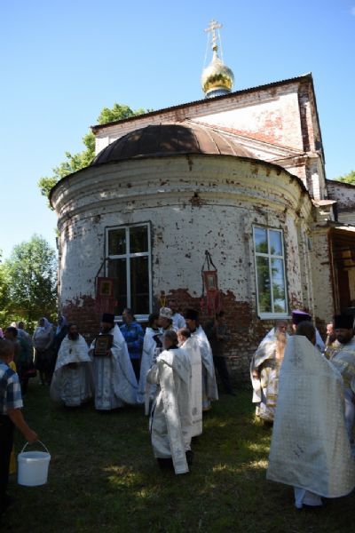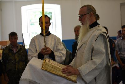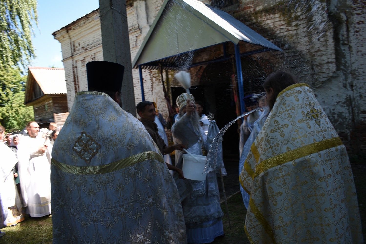 После Литургии прошел крестный ход вокруг храма с чтением Евангелия и кроплением святой водой. Затем Владыка обратился с проповедью к собравшимся и призвал к благодарности Богу за строительство и восстановление храма.