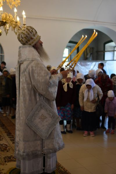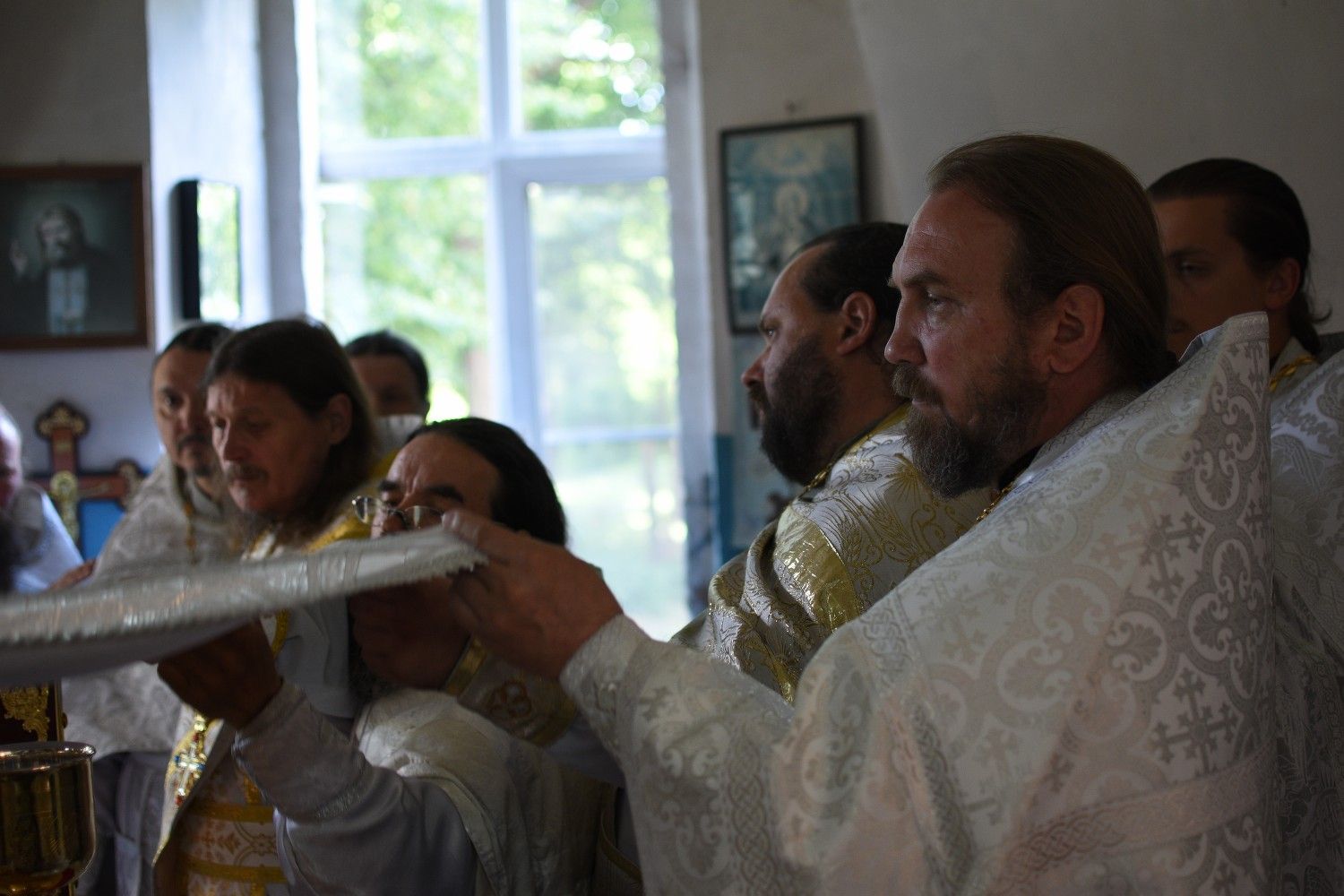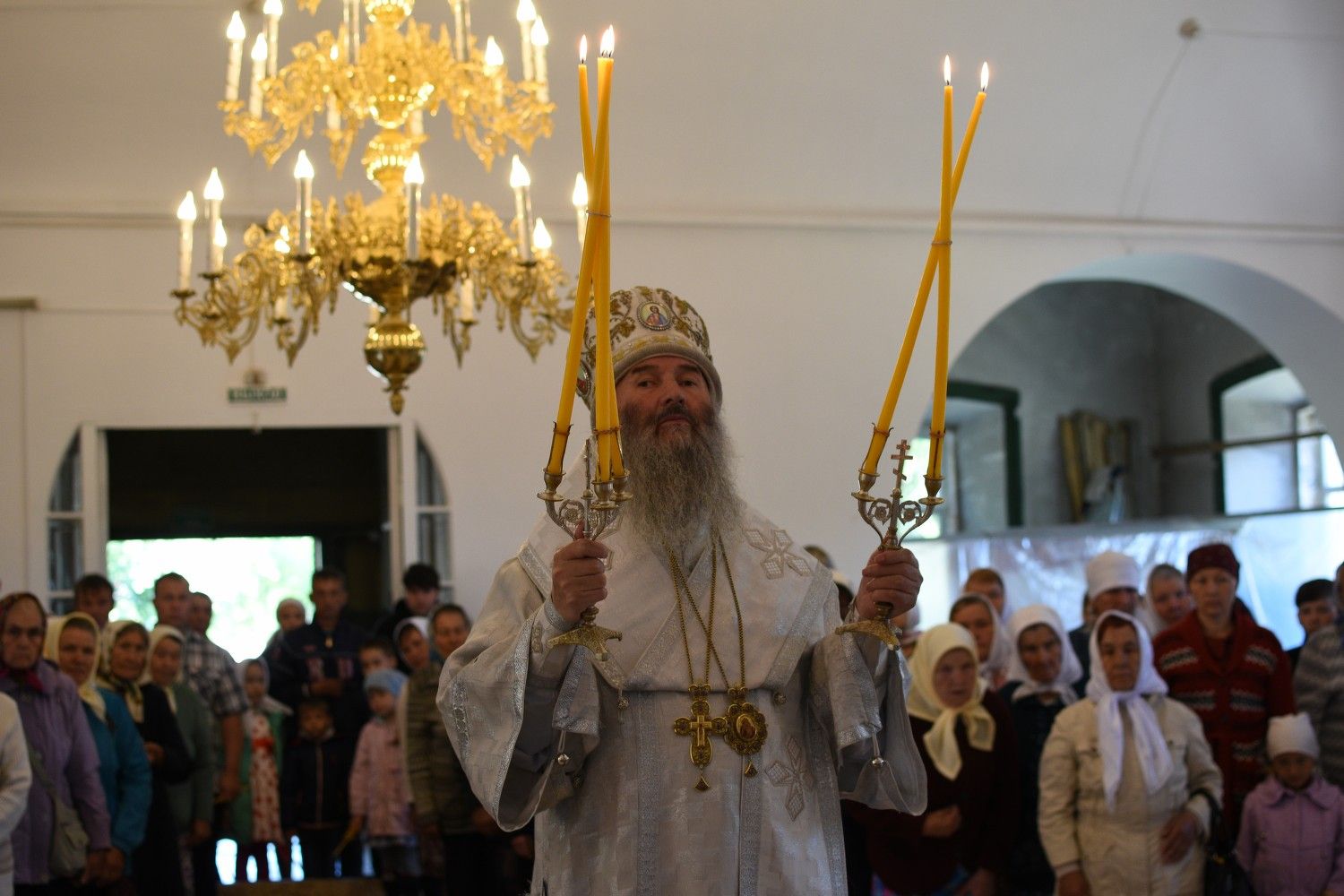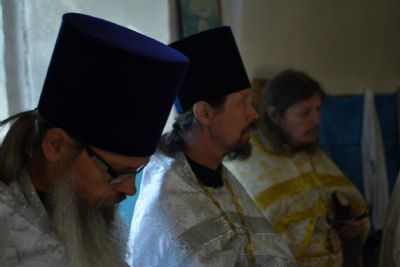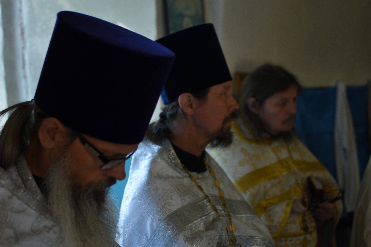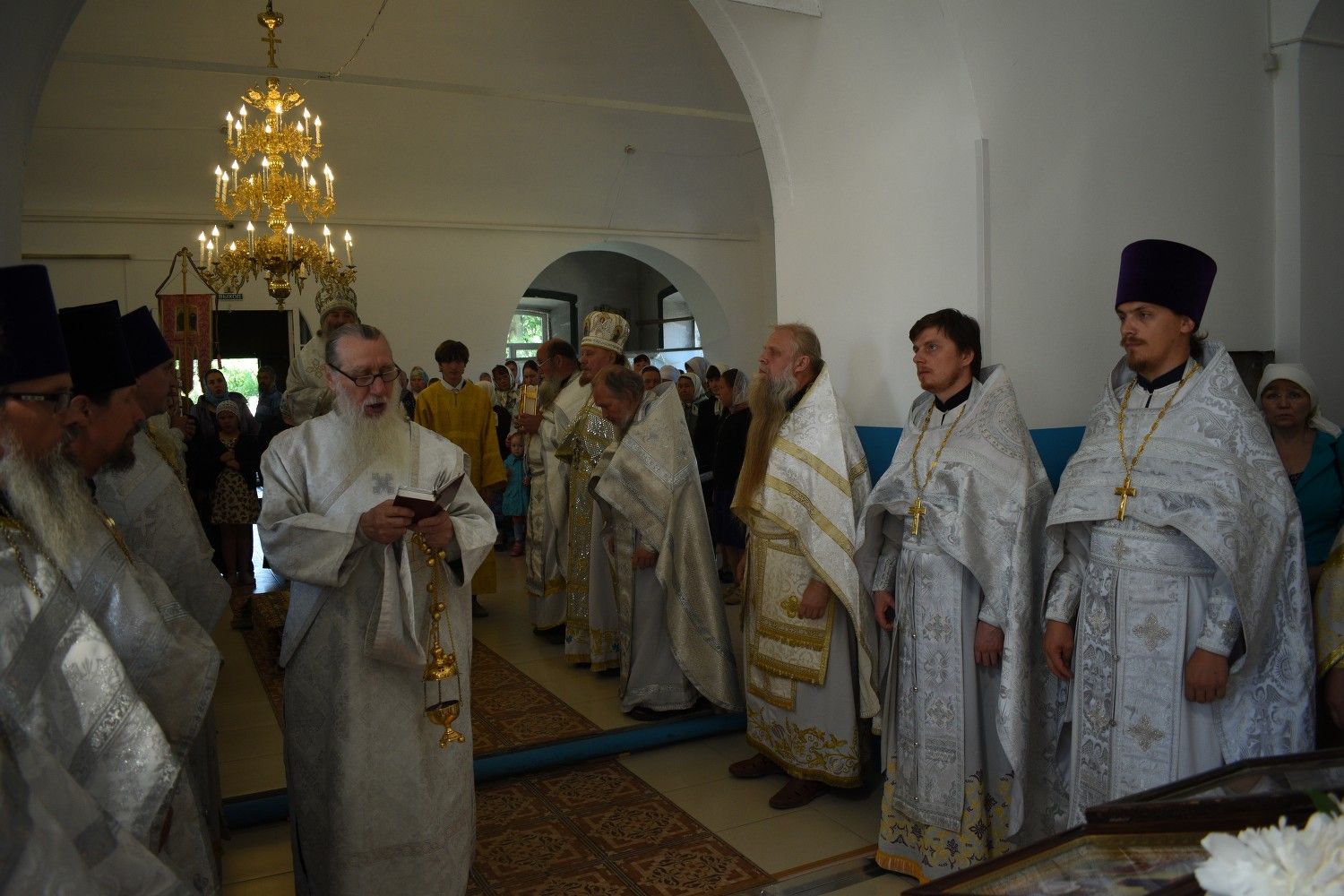 Владыке сослужили секретарь Йошкар-Олинского епархиального управления иеромонах Серафим (Пасанаев), настоятель храма протоиерей Николай Соколов, благочинный горномарийского округа, настоятель храма Святой Троицы г. Козьмодемьянск протоиерей Алексий Сущев, настоятель Святотроицкого храма с. Емелево протоиерей Александр Алешев, настоятель храма Иоанна Предтечи с. Коротни игумен Никодим (Актанаев), настоятель храма апостолов Петра и Павла с. Кузнецово протоиерей Иоанн Захаров, настоятель Святотроицкой церкви с. Троицкий посад протоиерей Виктор Соловьев, клирик храма Михаила Архангела с. Новая Слобода протоиерей Андрей Малюта, настоятель храма Святителя Николая с. Микряково протоиерей Александр Лукьянов, настоятель храма Смоленской иконы Божией Матери г. Козьмодемьянска иерей Алексей Евсеев, настоятель храма Святого Духа с. Усола иерей Александр Малинов, настоятель Введенского храма с. Выселок революции иерей Василий Решетников, настоятель храма Рождества Христова с. Пайгусово иерей Сергий Князев, настоятель храма Владимирской иконы Божией Матери с. Владимирское иерей Алексей Васюткин, настоятель храма Рождества Христова с. Еласы Александр Сиситкин и клирик храма Рождества Пресвятой Богородицы с. Семеновка протодиакон Михаил Козловский. Песнопения исполнял хор храма.