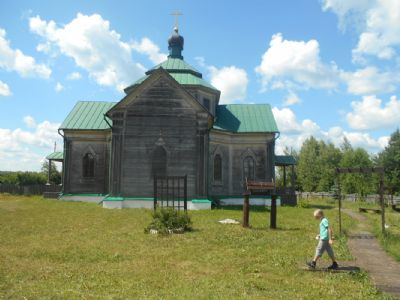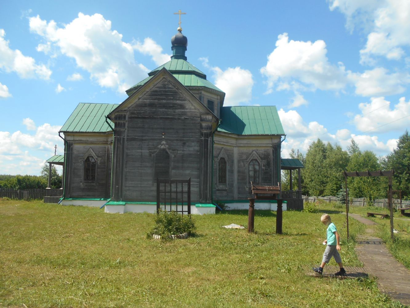 В селе Воскресенском проезжаем по мосту на другой берег Ветлуги, делаем поворот направо, перед дорожным знаком «с. Троицкое, парк «Серая лошадь»». Мы едем вдоль парка и останавливаемся перед воротами, за которыми видны две старинные, деревянные, построенные без единого гвоздя церкви. История этих церквей окружена легендами и преданиями.