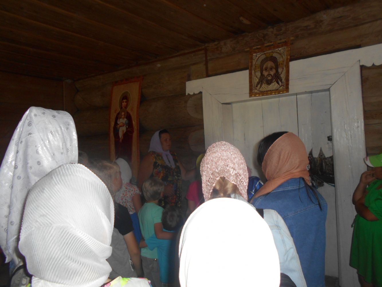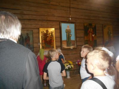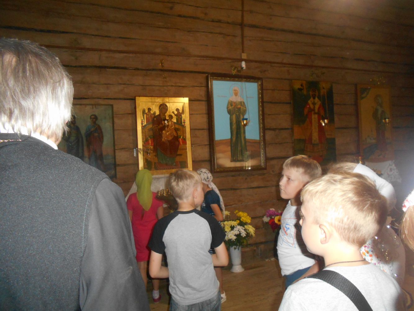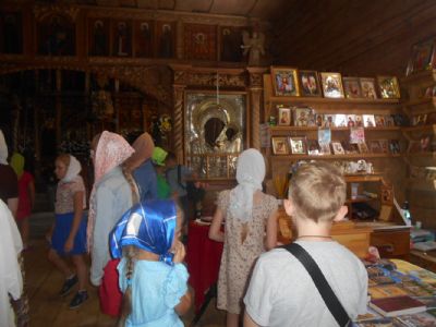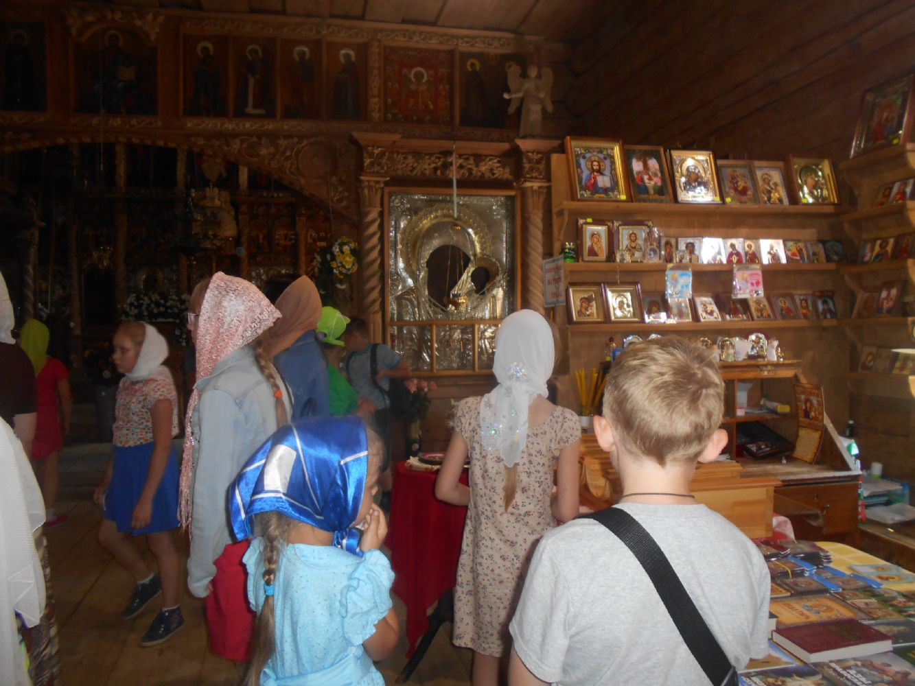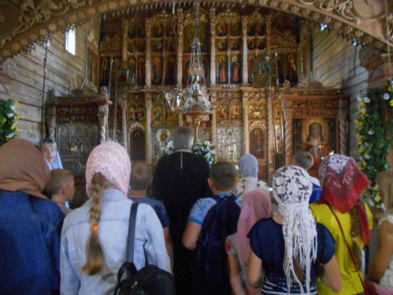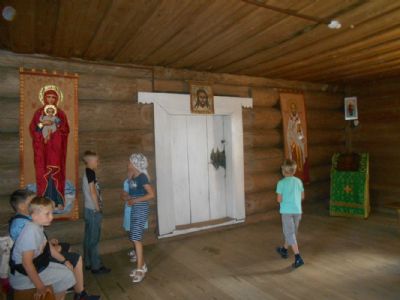 Нас встречает служащая церкви Зоя Владимировна. Вначале мы осматриваем церкви снаружи, имея возможность обойти их вокруг. Ожидаем начало экскурсии в притворе церкви. Садимся на скамьи, вырубленные монахами и прикасаемся к стенам, срубленным из могучих лиственниц. Зоя Владимировна рассказывает нам о истории церкви и о том каким образом удается сохранять святыни. Мы узнали, что при советской власти эти церкви не подвергались разорению и были закрыты на непродолжительный период с 1941 по 1947 год. Богослужения в храме не велись всего лишь семь лет. Любовь жителей к Богу и своему прошлому передавалась из поколения в поколение. В настоящее время жителей в селе Троицкое осталось мало, но они воспитанные своими предками, продолжают передавать любовь и уважение к своему прошлому своим детям и внукам.