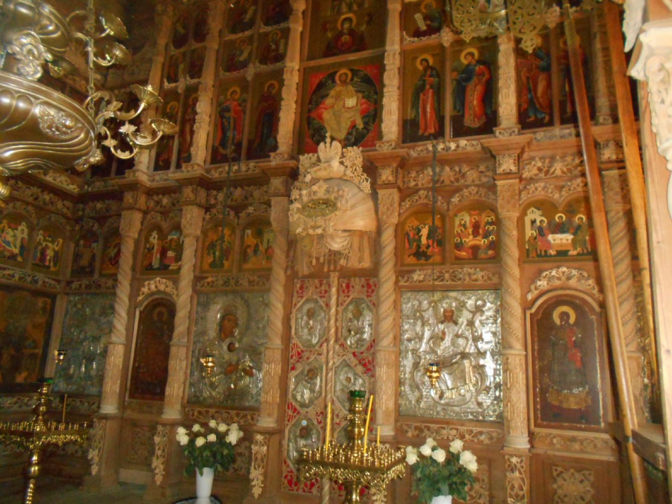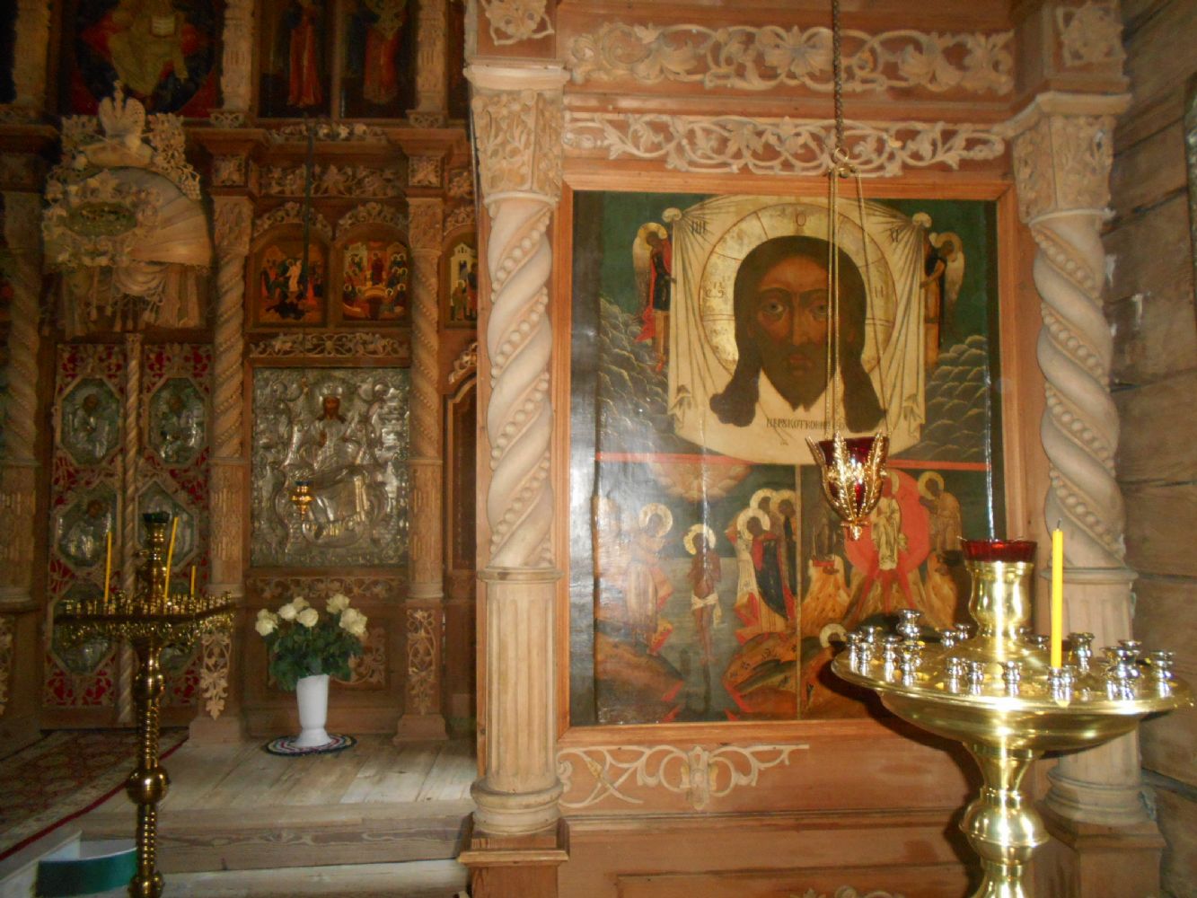 С благоговением заходим в Троицкий храм. Перед нами пятиярусный вырезанный из клена иконостас. Зоя Владимировна объясняет нам, что убранство храма осталось в оригинальном состоянии. В храме много икон. В настоящее время часть икон находится на реставрации.
