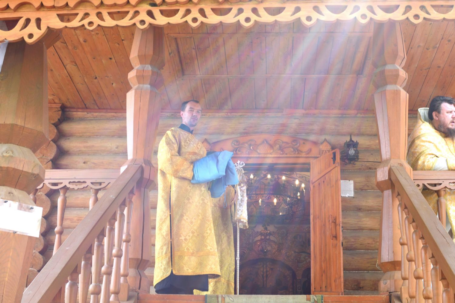 В конце службы священство вышло в центр храма для славления Пресвятой Богородицы: пропели тропарь, кондак и величание перед иконой Пресвятой Богородицы «Достойно есть...».